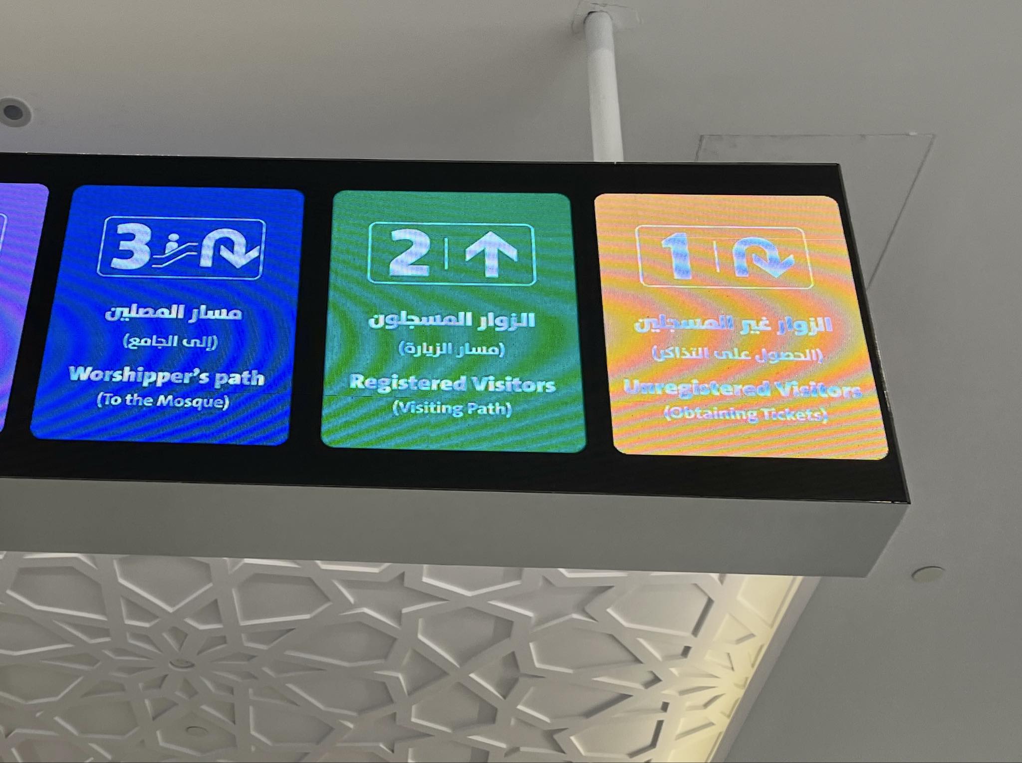 予め予約したQRコードを持っている方は、そのまま案内表示に従いモスク入場口のある、Registerd Visitorsと書かれた番号「2」へ進みます。
