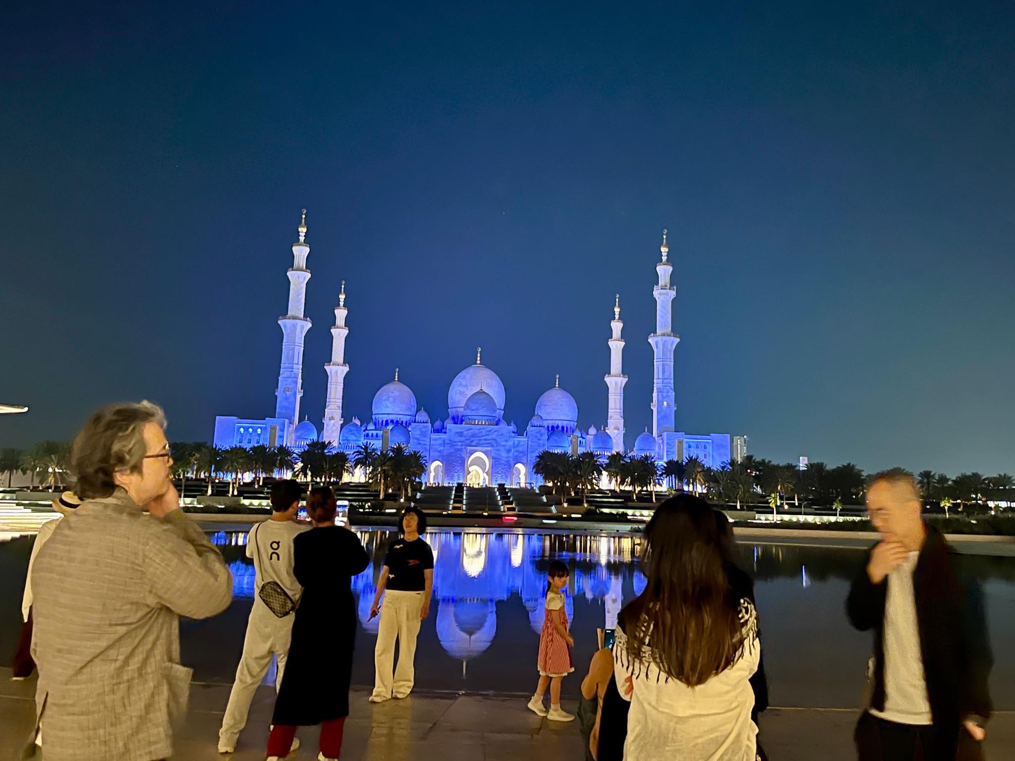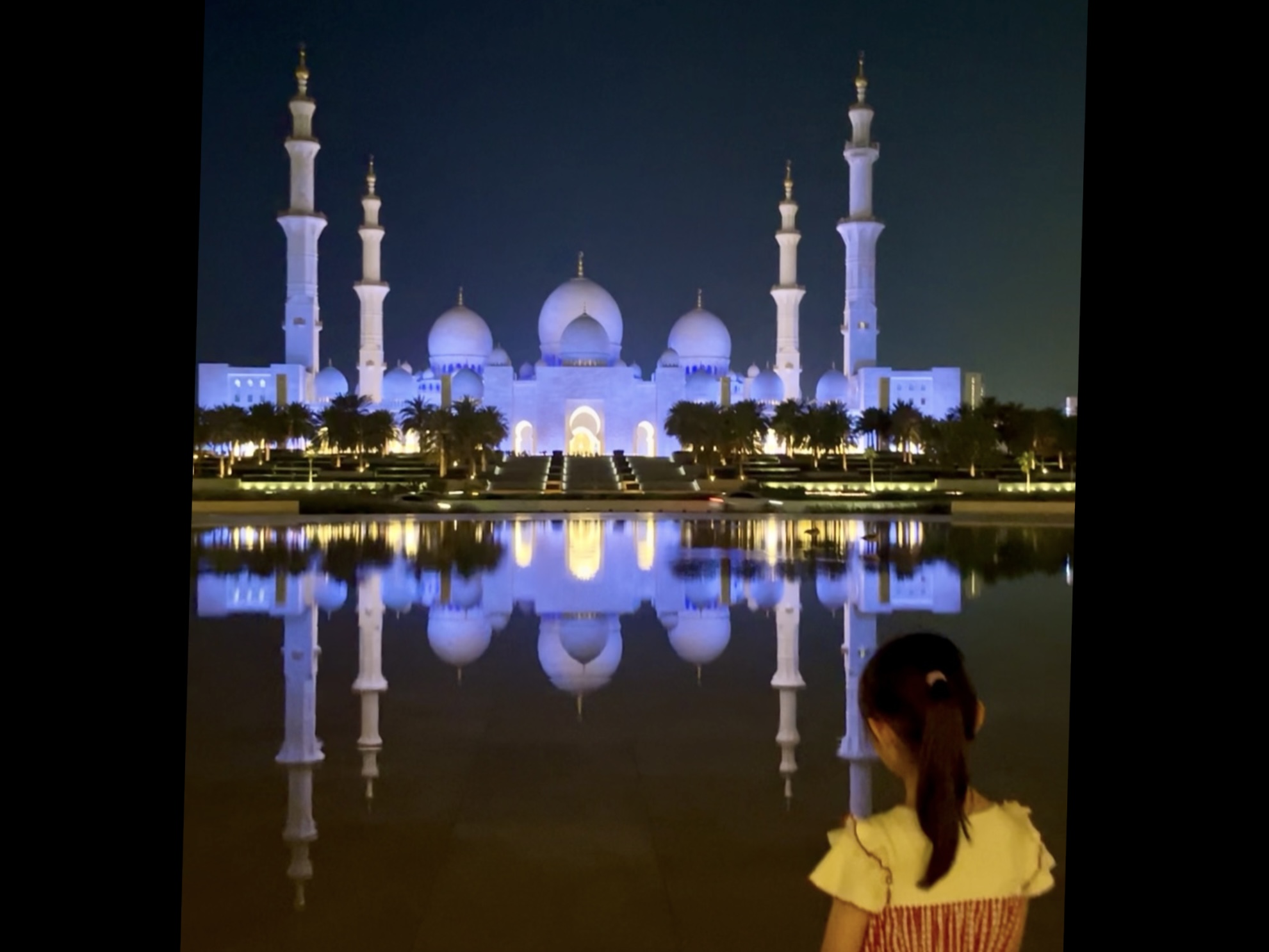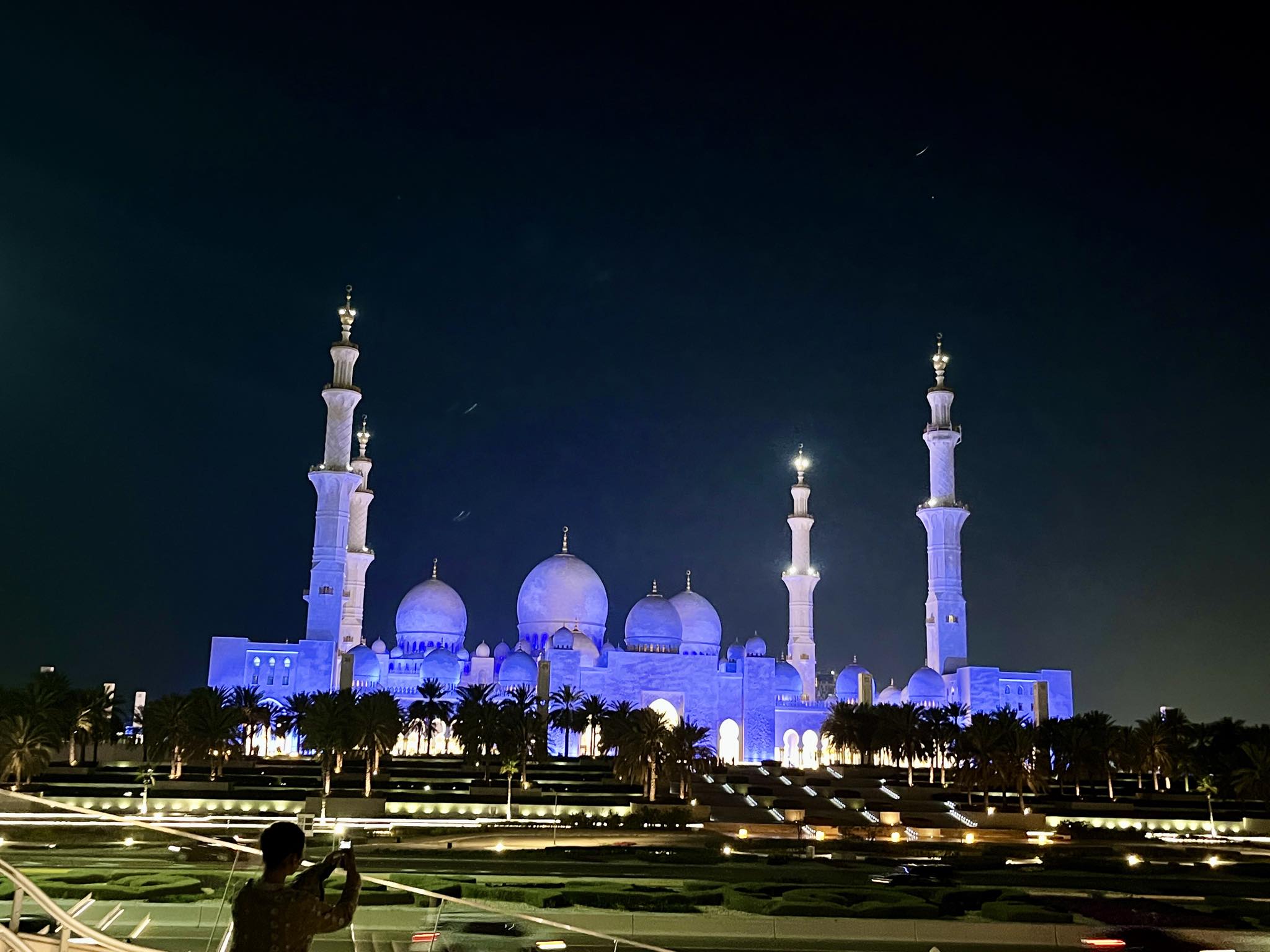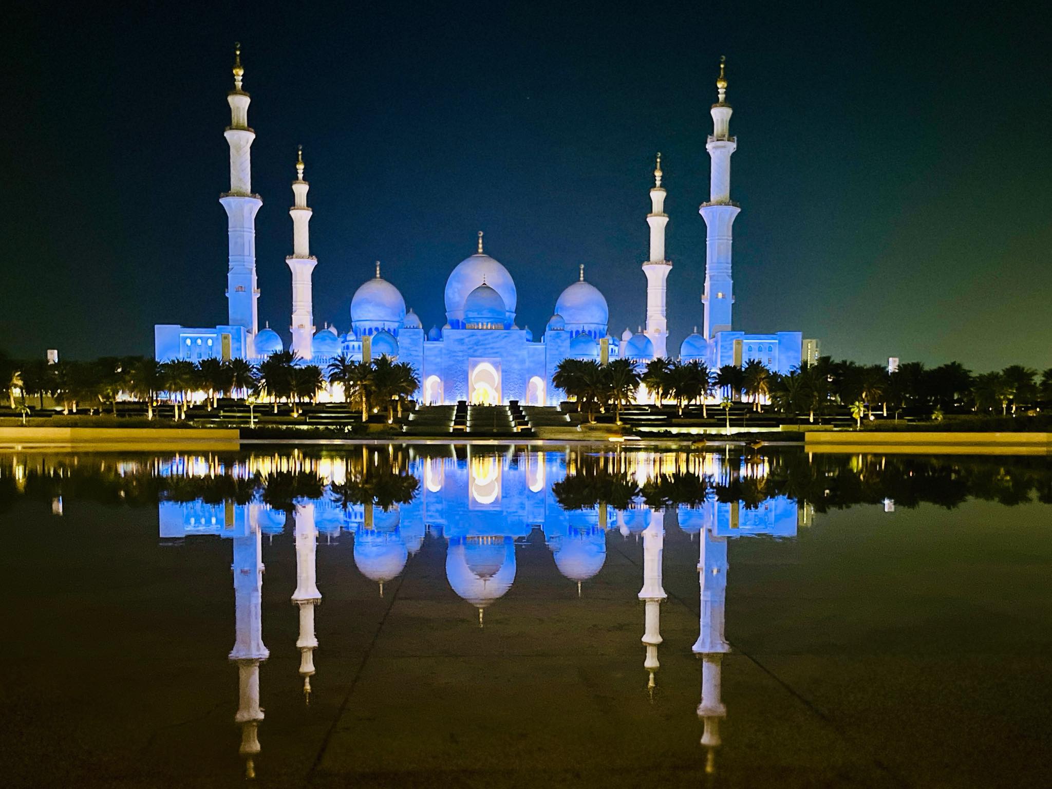 昼間のモスクも美しいですが、ライトアップされた夜のモスクも綺麗!