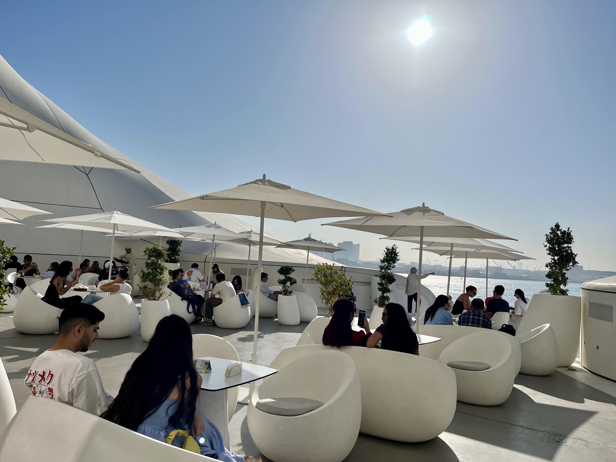 歩き疲れたら、アラビア湾が見渡せる絶景のテラスで、日本のスイーツが味わえるカフェ屋さんも営業中。