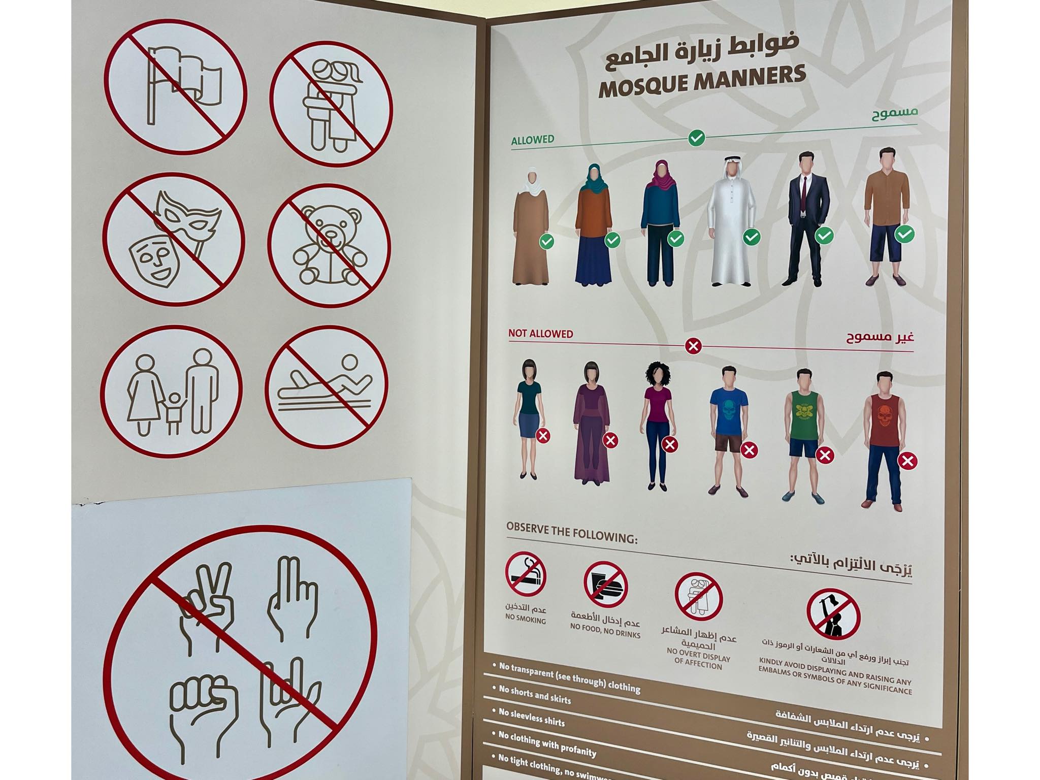 モスク入場口には、服装の注意点の説明(イラスト付き)がありますのでよく読んでから入場しましょう。