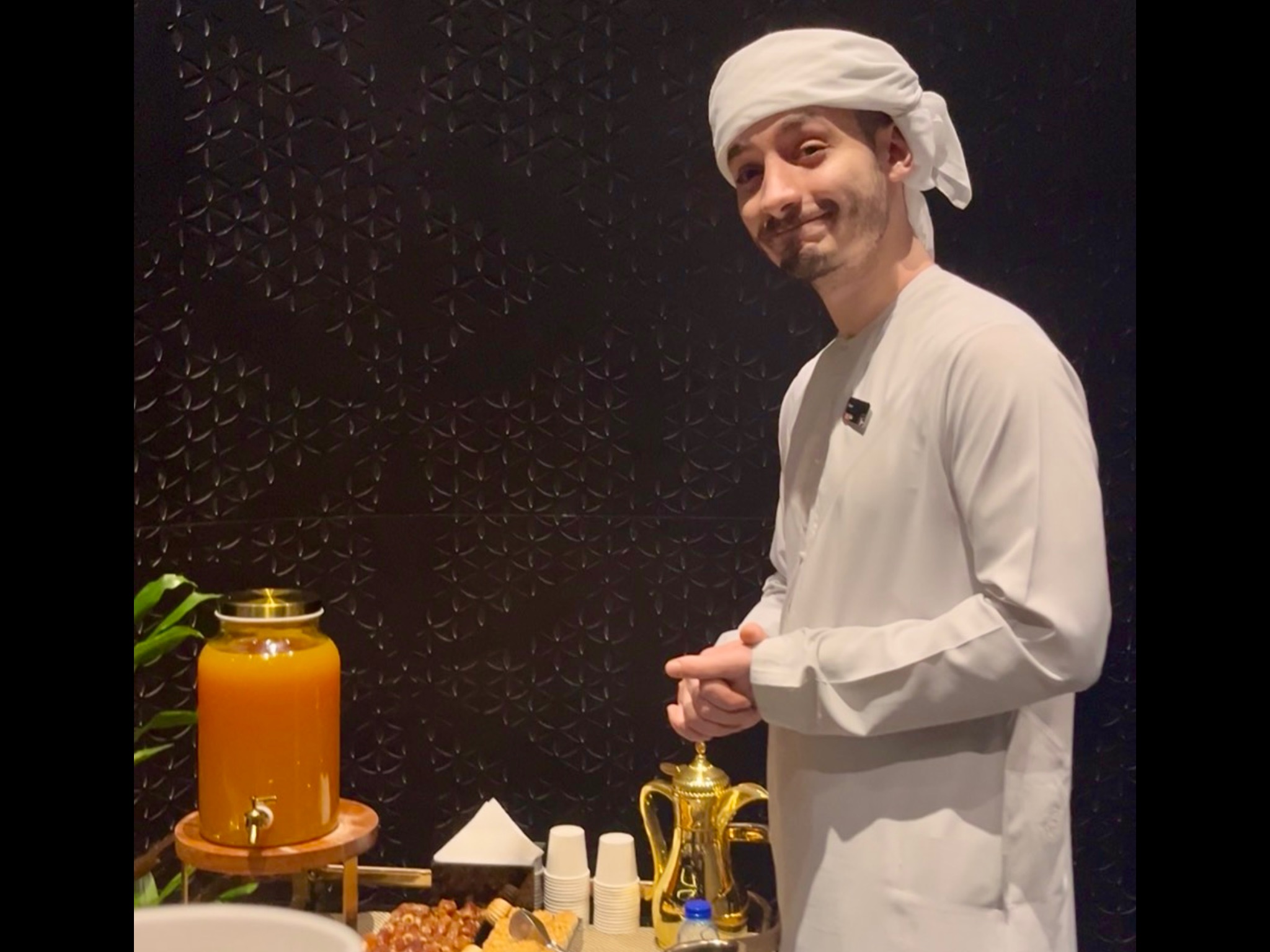 グラスが空いたら次の飲み物もオーダー可能、デーツや焼き菓子もおかわりが自由です。