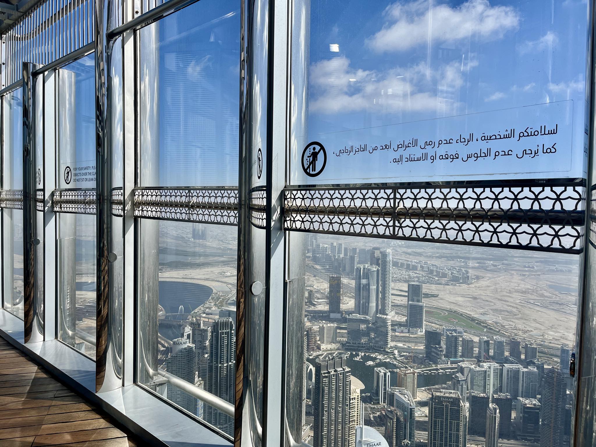 - 148階には片側の展望デッキしか無い(海側のブルジュアルアラブ方面のみ展望が可能。メインの高層ビル群方向のデッキがない)