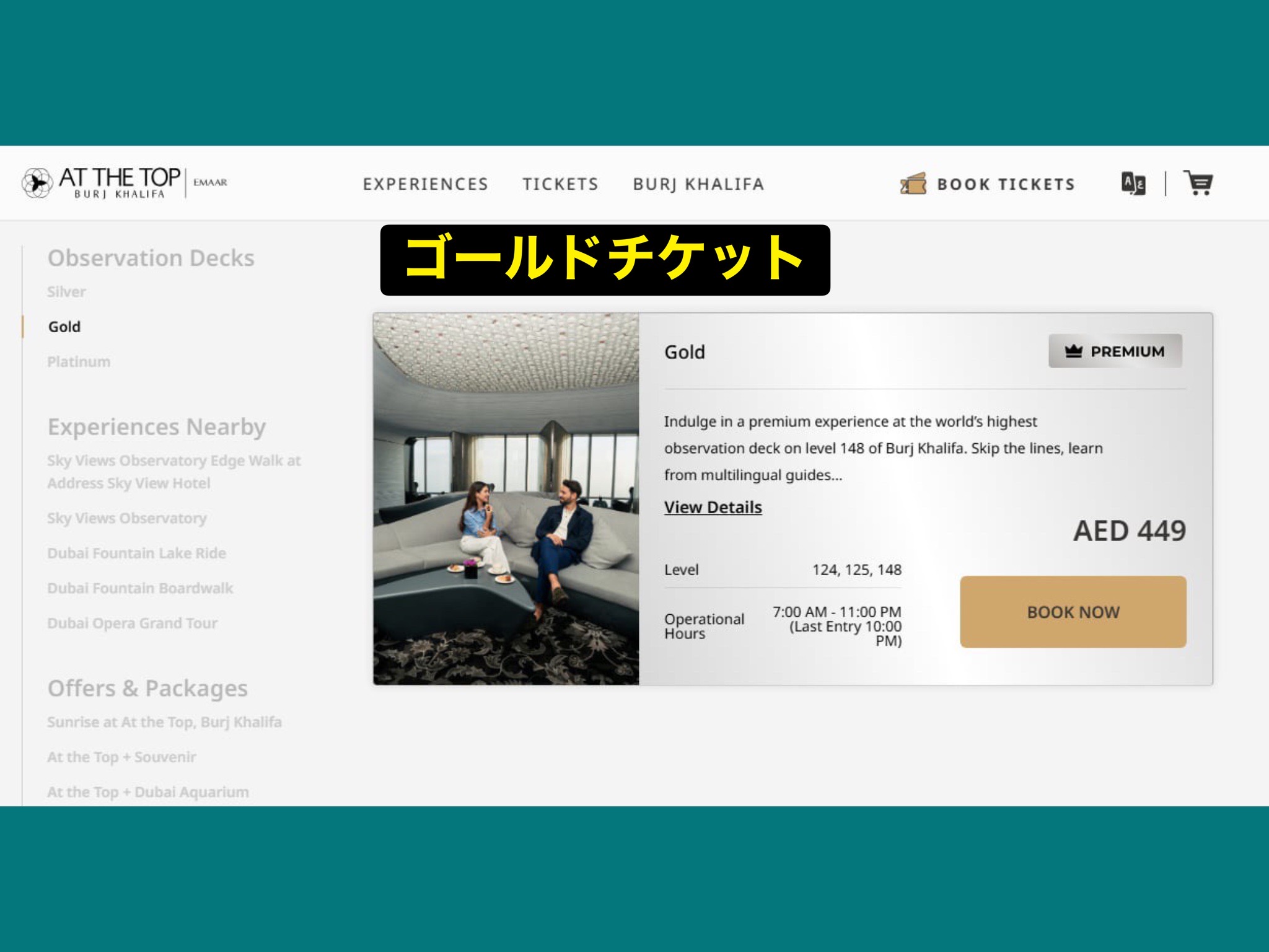 公式HPBurj Khalifa At The Top Tickets – Great Offers | Burj Khalifaを開いてみると、アクセスできるフロアが大きく分けて3か所存在することが分かります。