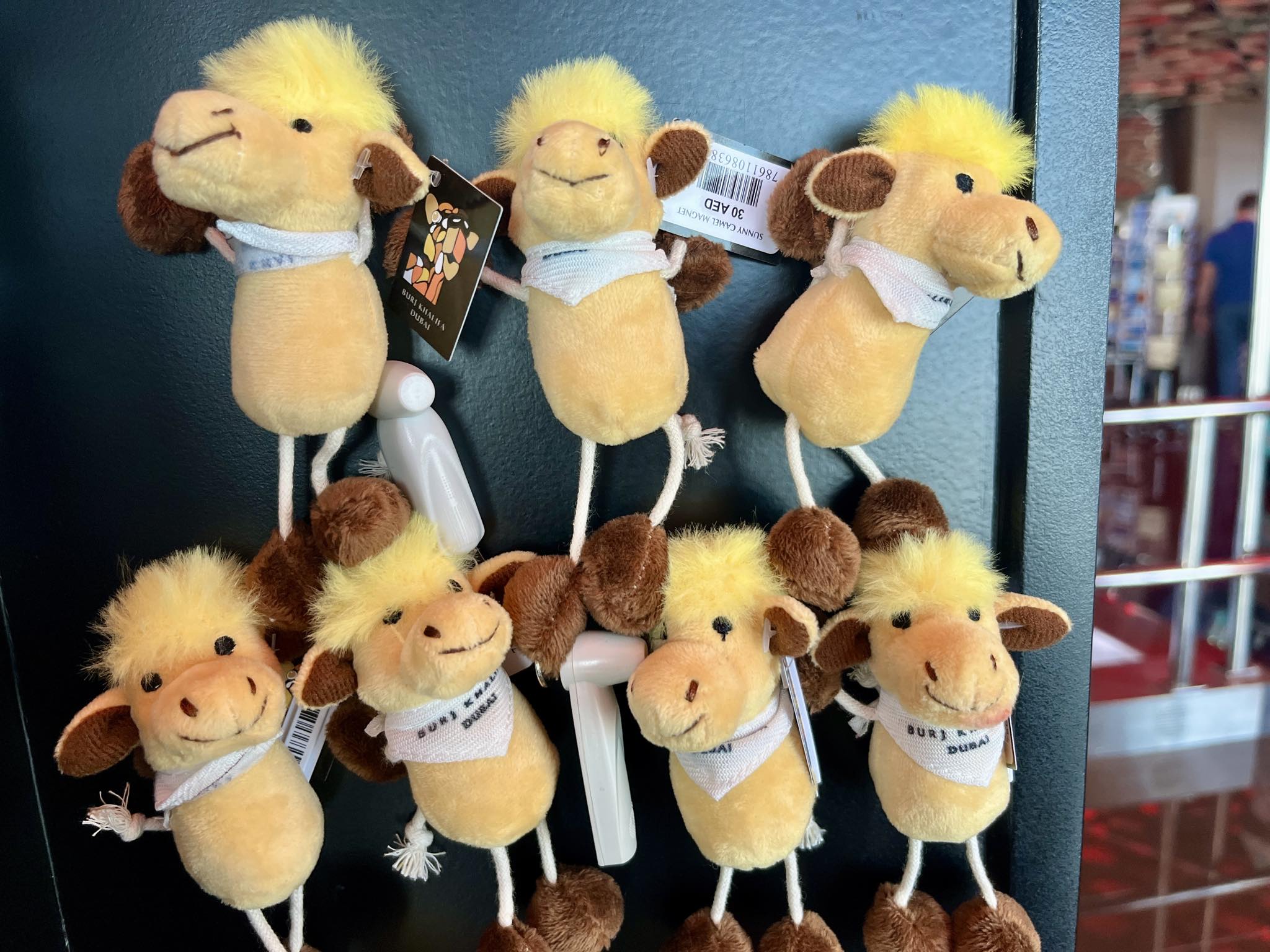 可愛いラクダのマグネットは、1個Dhs.30(日本円約1,200円)。