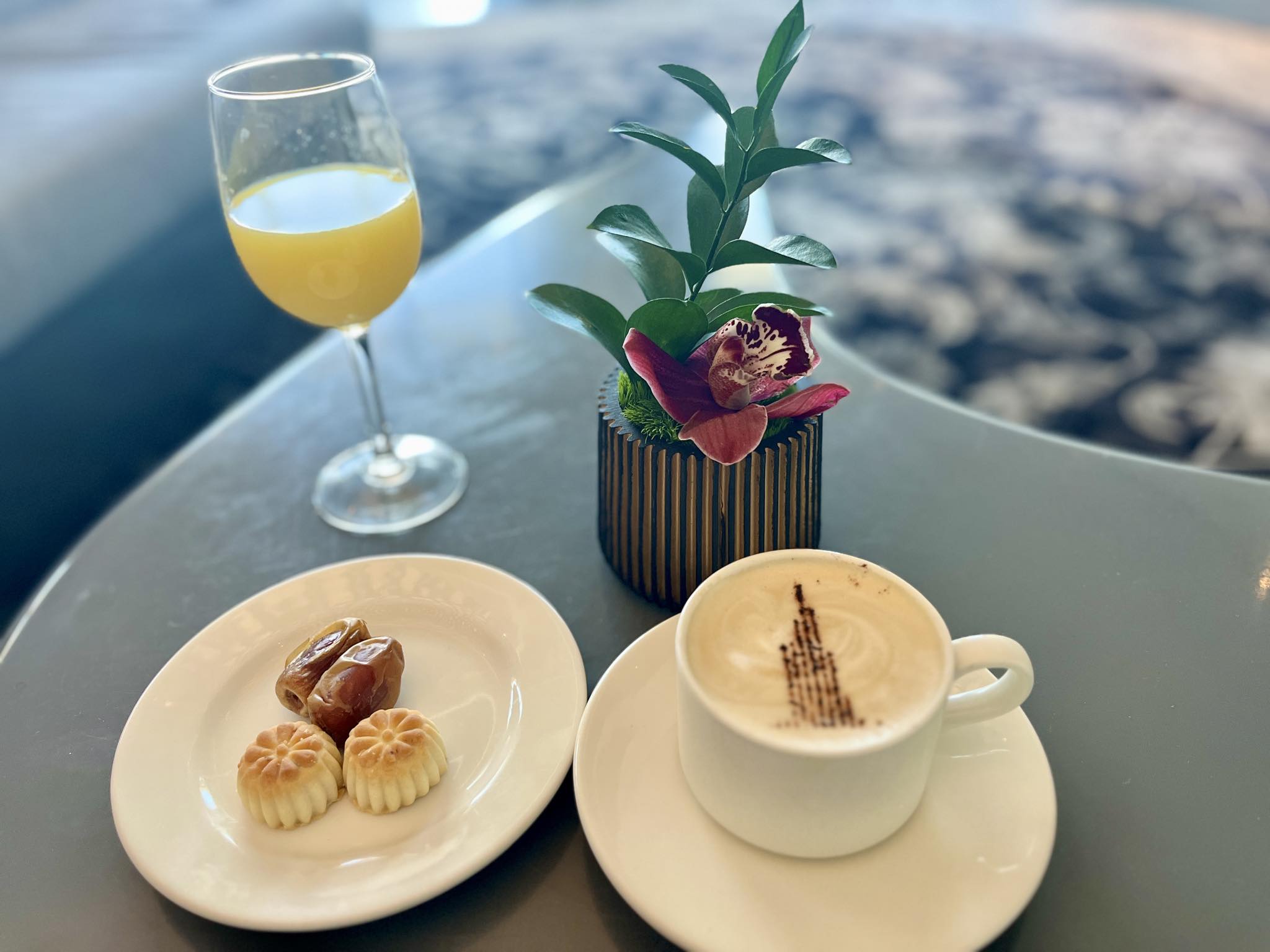 軽食って何?と思われると思いますが、コーヒー・紅茶もしくはオレンジジュースとデーツ(なつめやし)と小さな焼き菓子が用意されています。