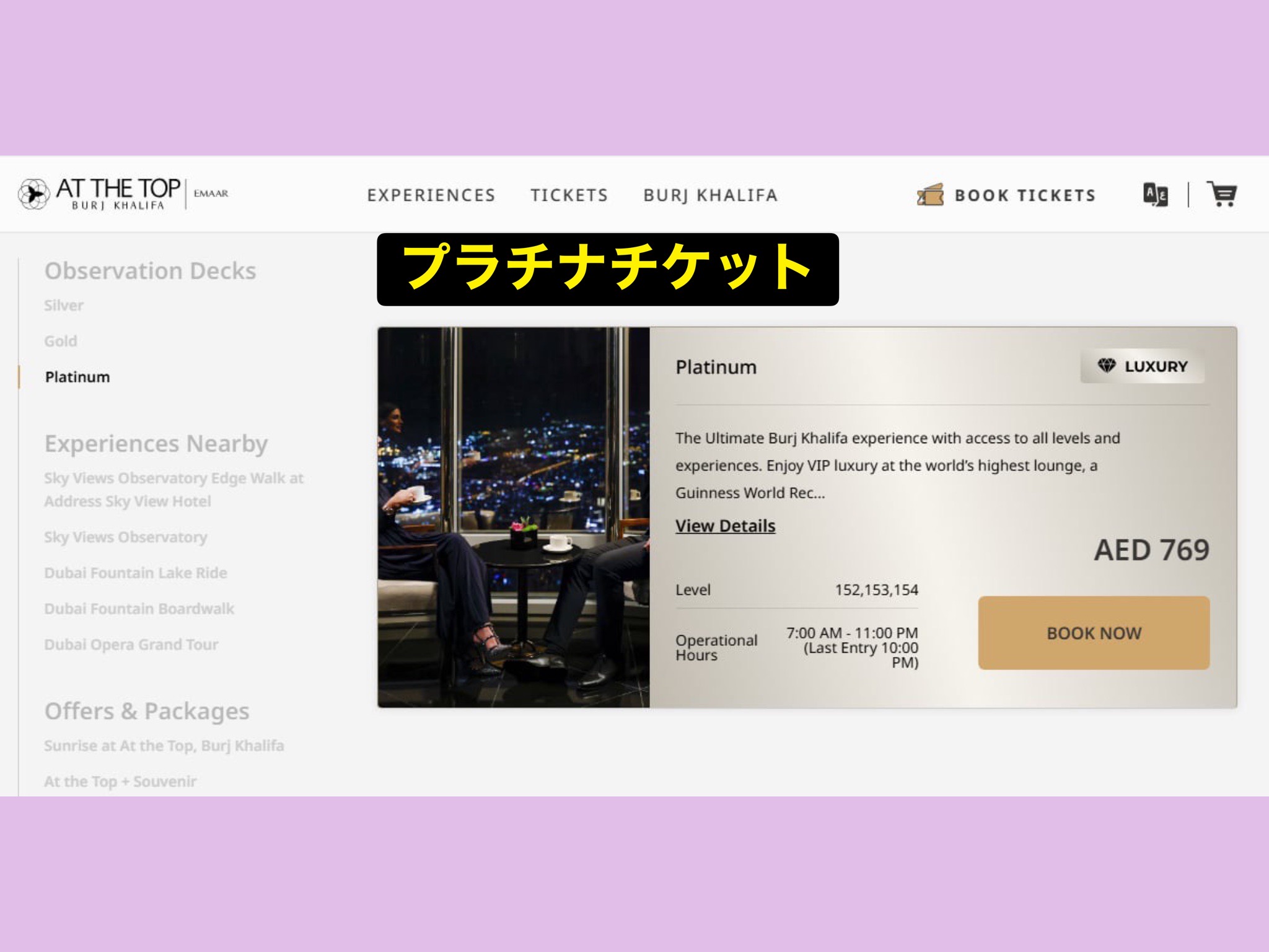 最上階154階にアクセスできる【 Platinum Ticket 】プラチナチケットがオススメ!
