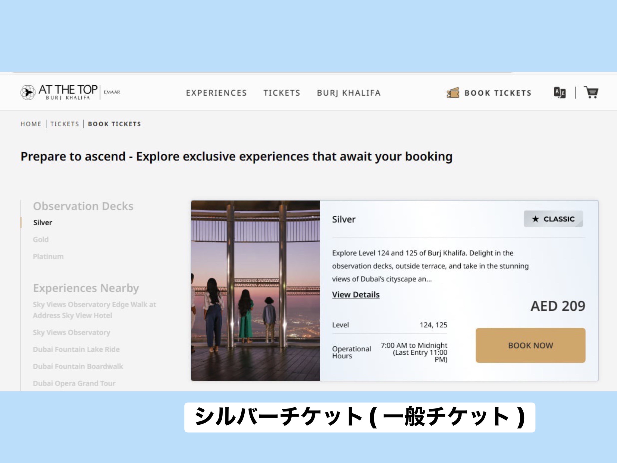 125,124階の2フロアにアクセスできる一般チケット【 Silver Ticket 】を購入しようとされている方への注意点
