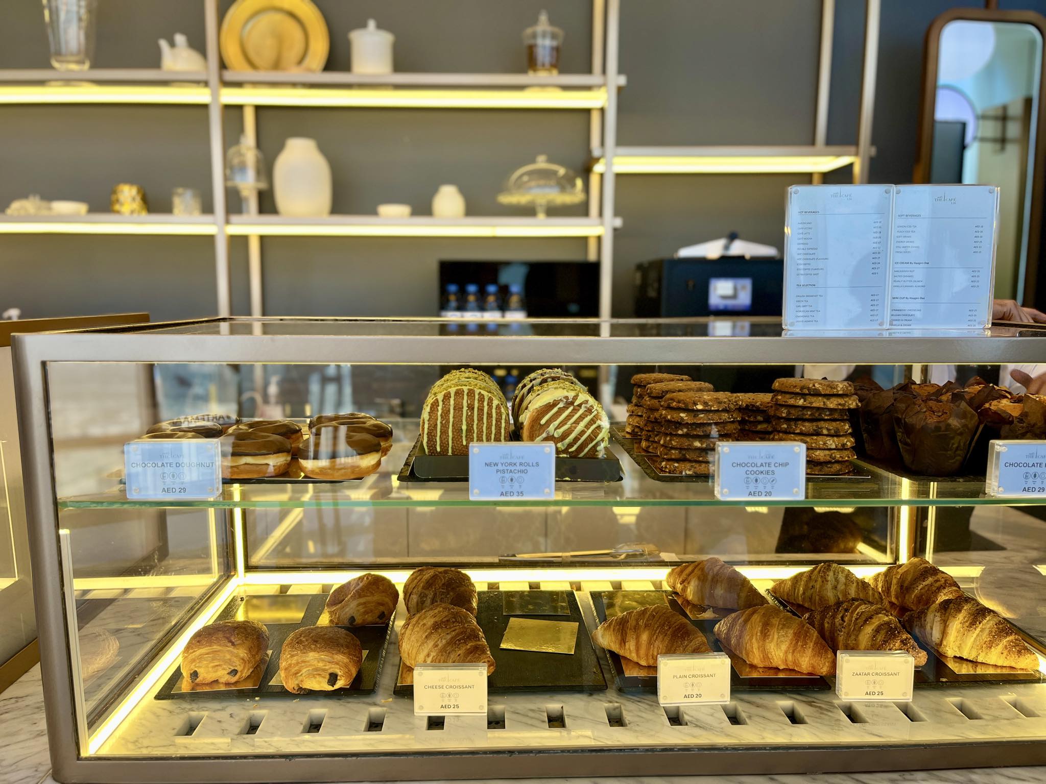 クロワッサン1個Dhs.20(日本円で約800円)、チョコレートマフィンが1個Dhs.29(日本円で約1,200円)で販売されていています。