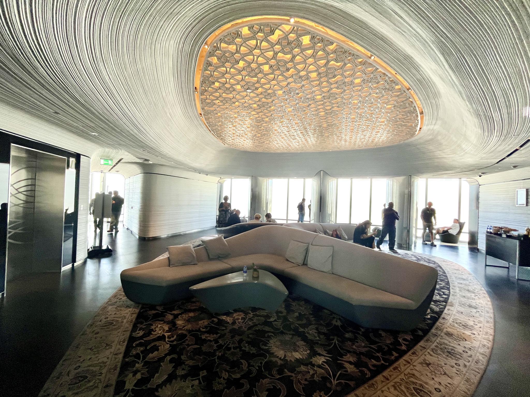 エレベーターを降りるとすぐ目の前に天井のデザインが印象的なここが148階となります。