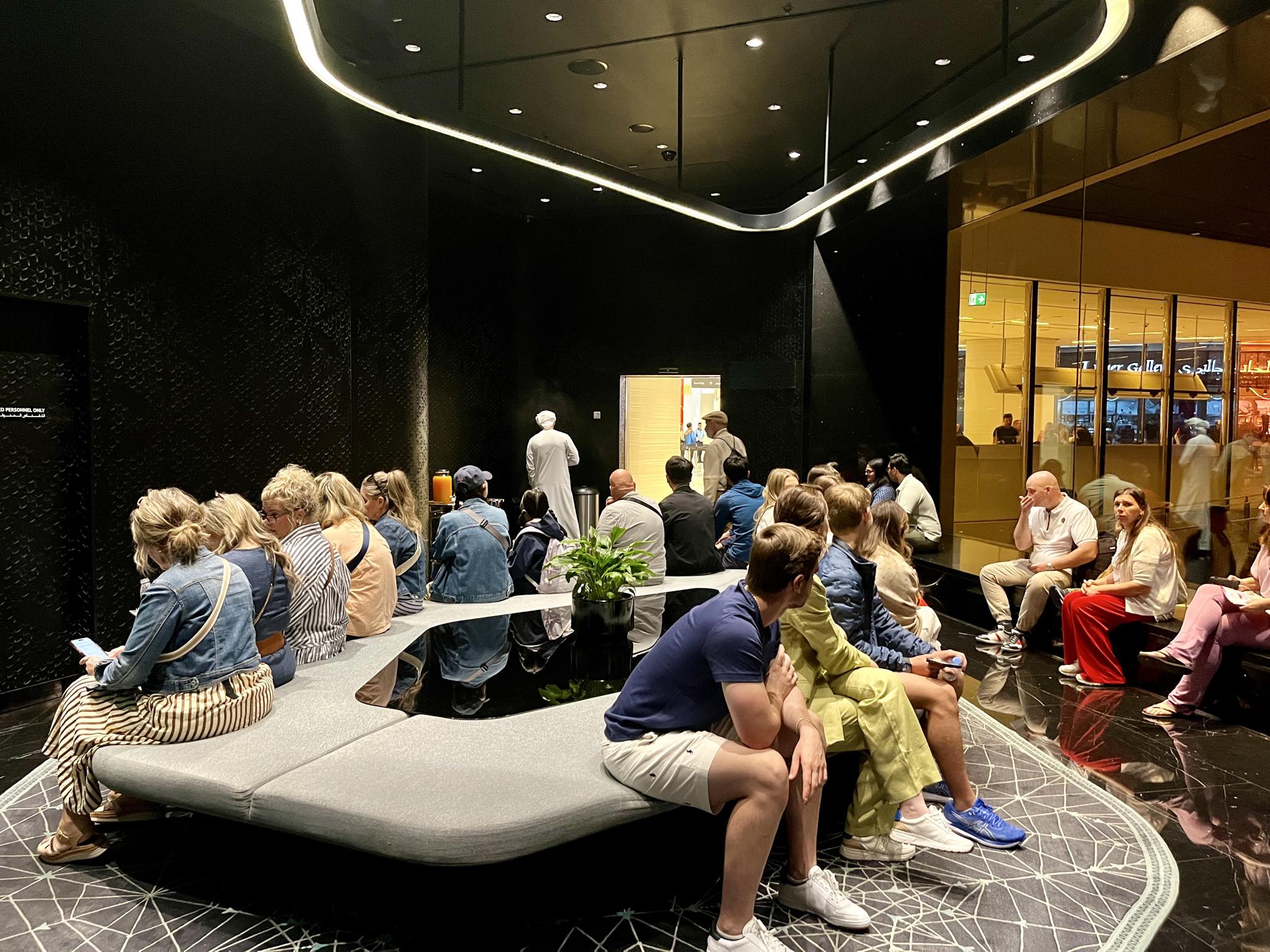 インスタグラムでもよく投稿されて見かけるブルジュハリファお決まりのポーズ「窓際に座って遠くを眺めている1枚」の撮影をしている人たちを148階では至る所で見かけました。