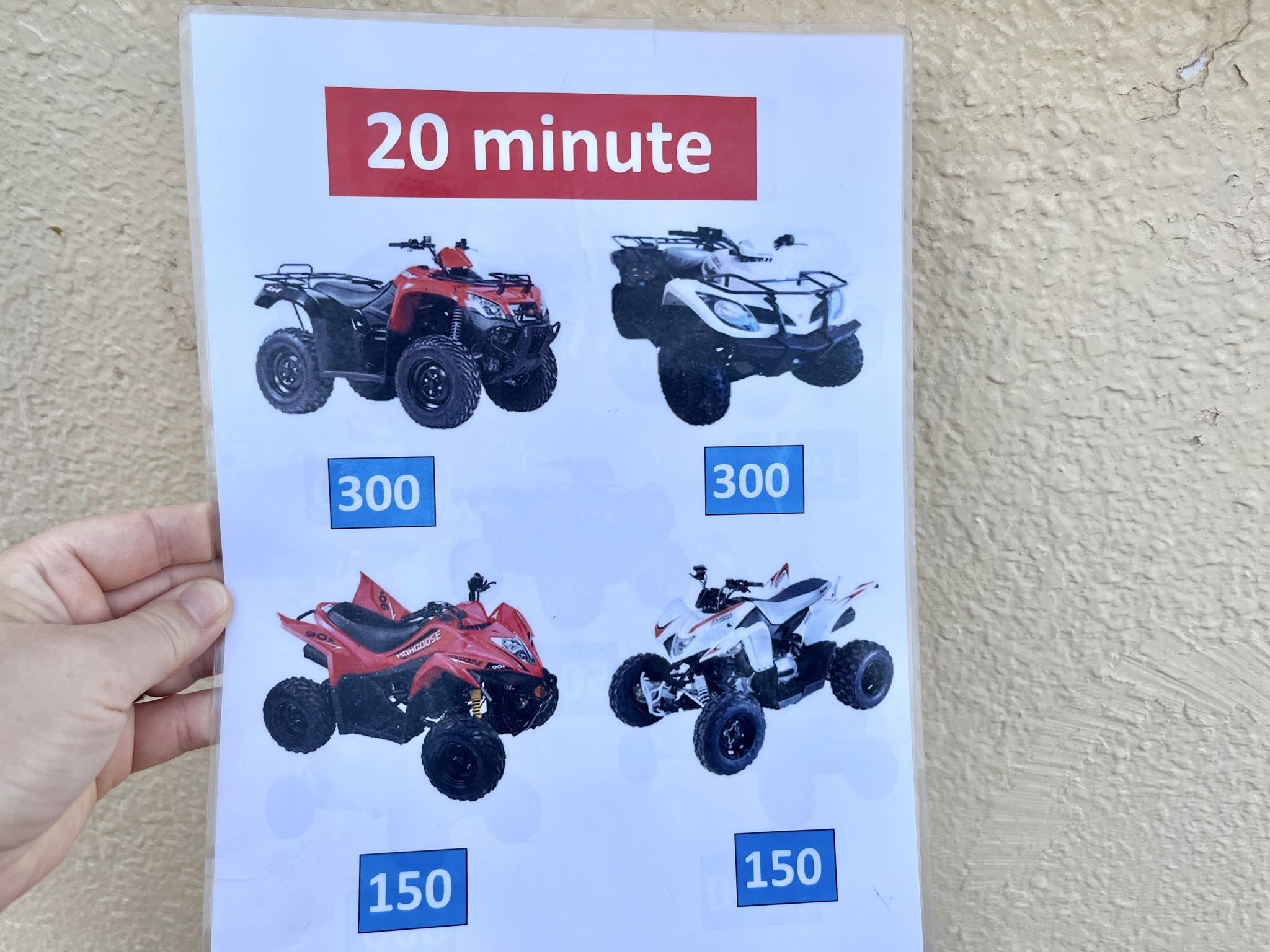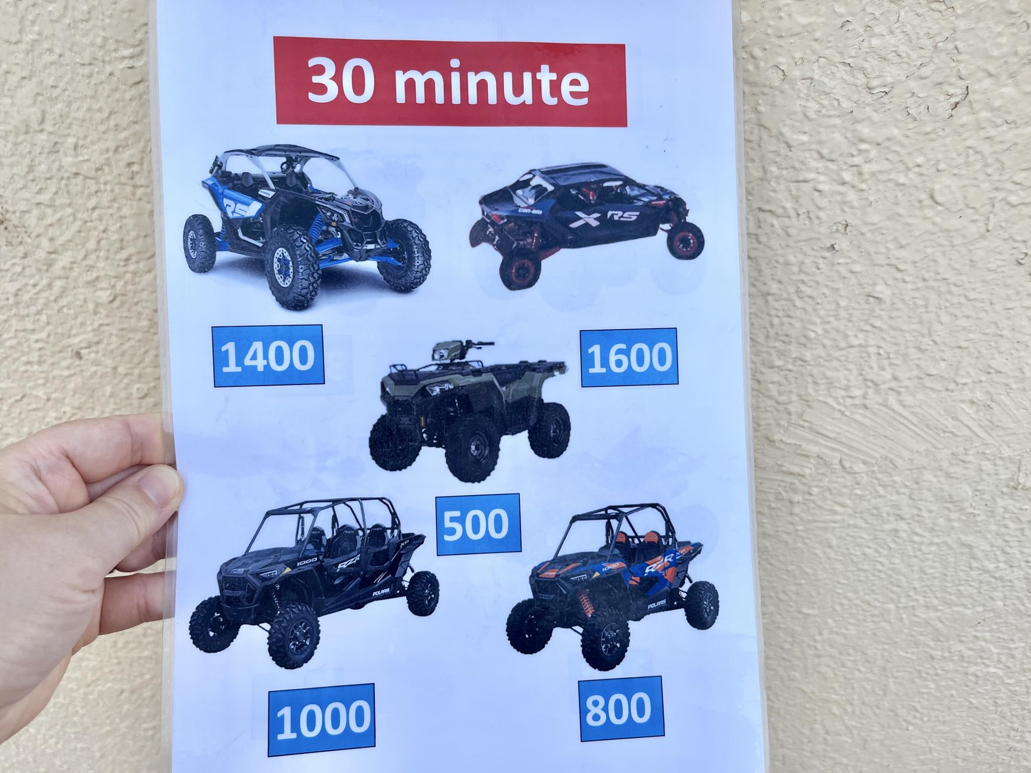 バギー体験の値段表(↓)を見つけました。