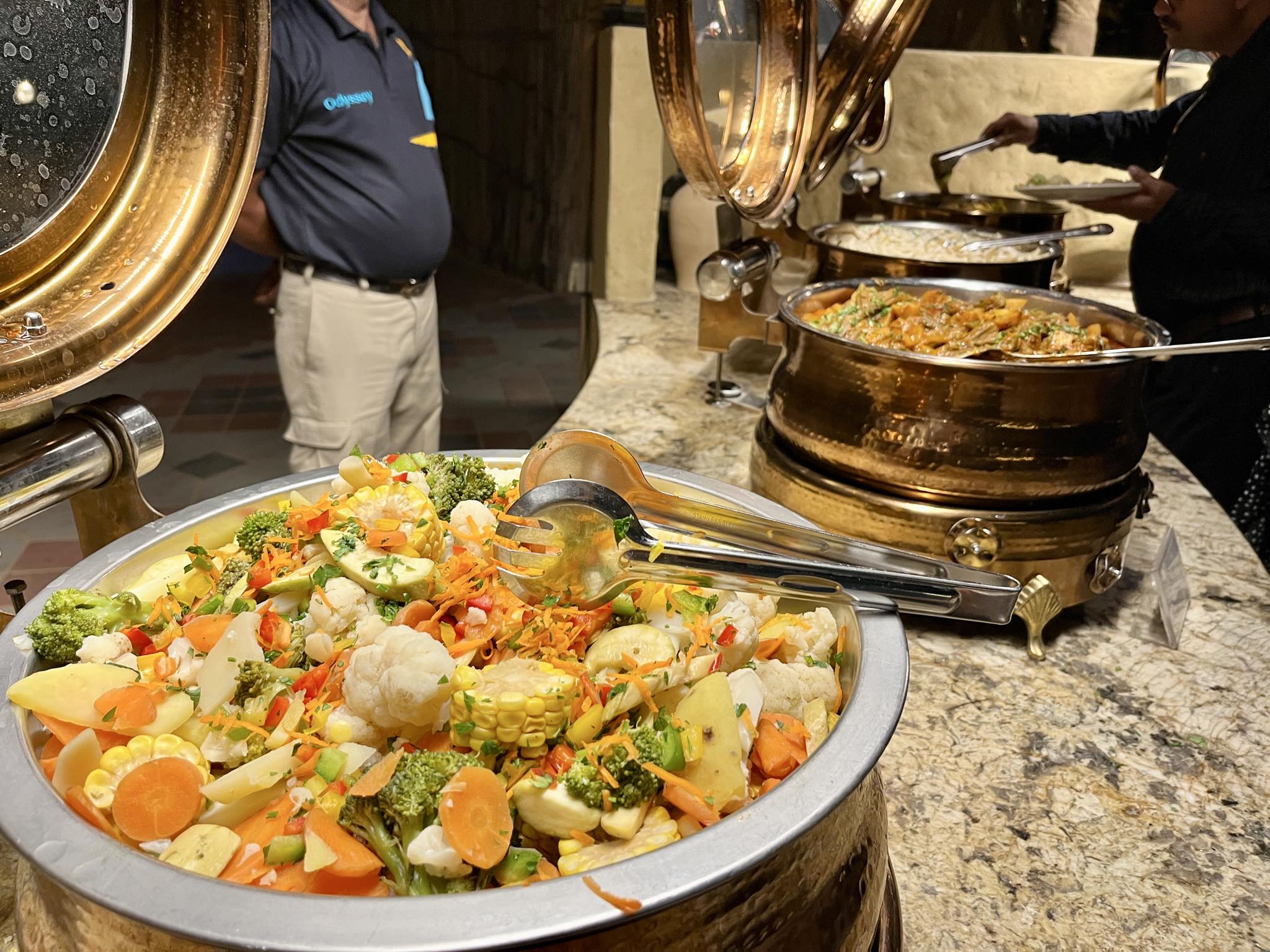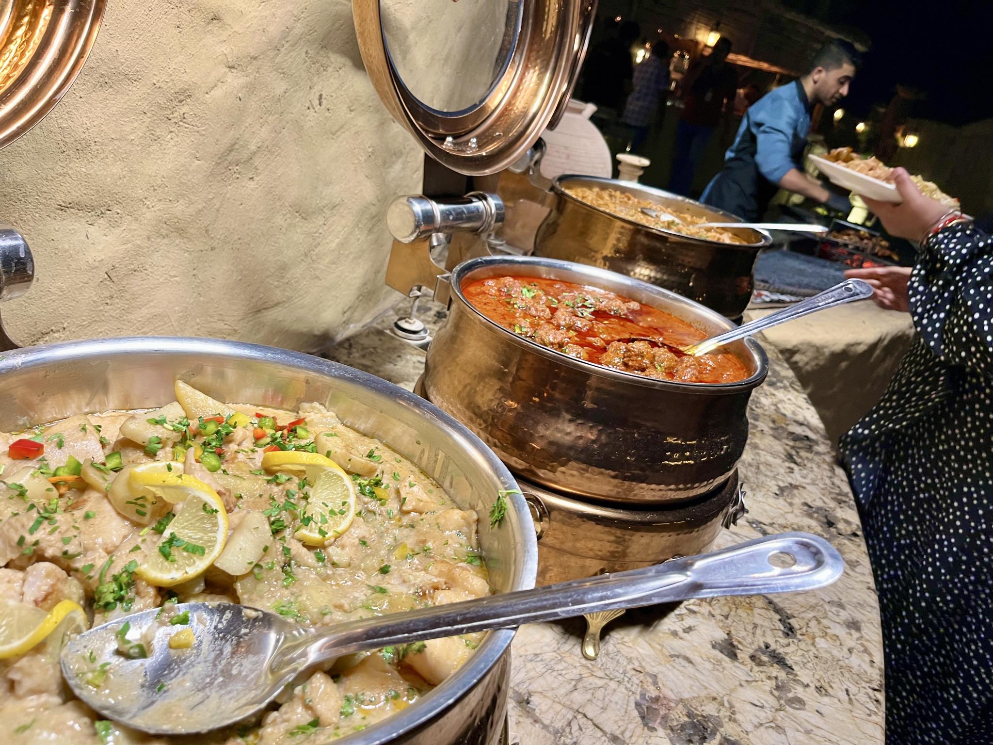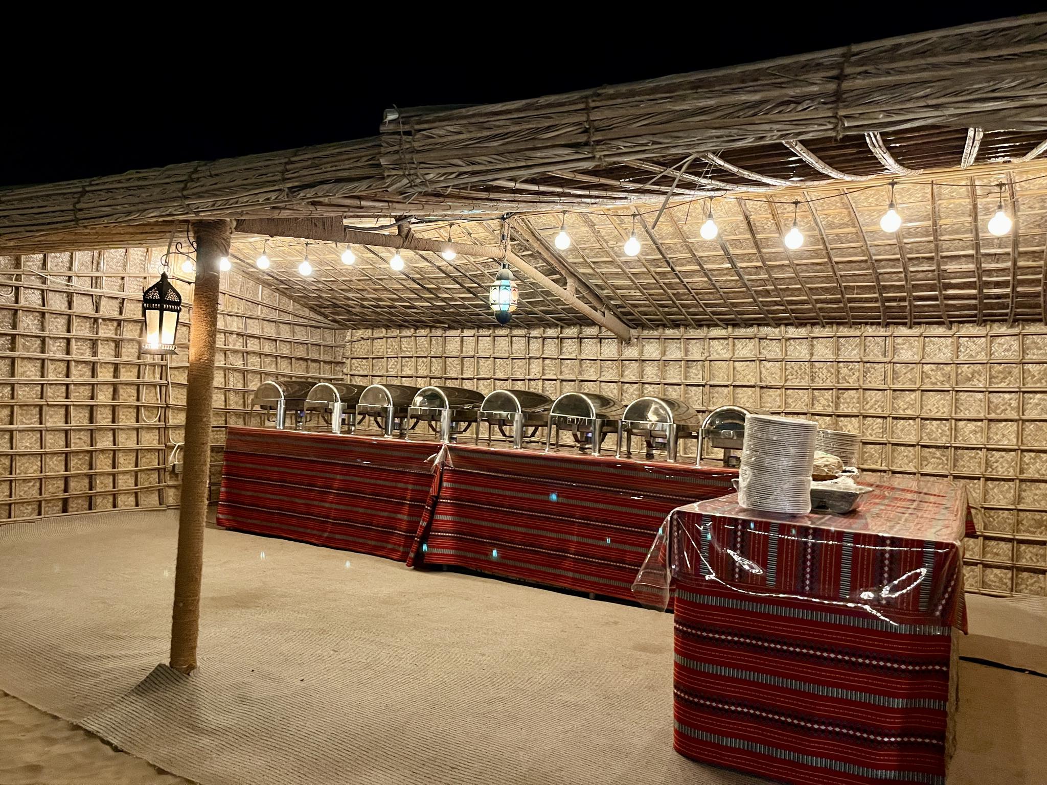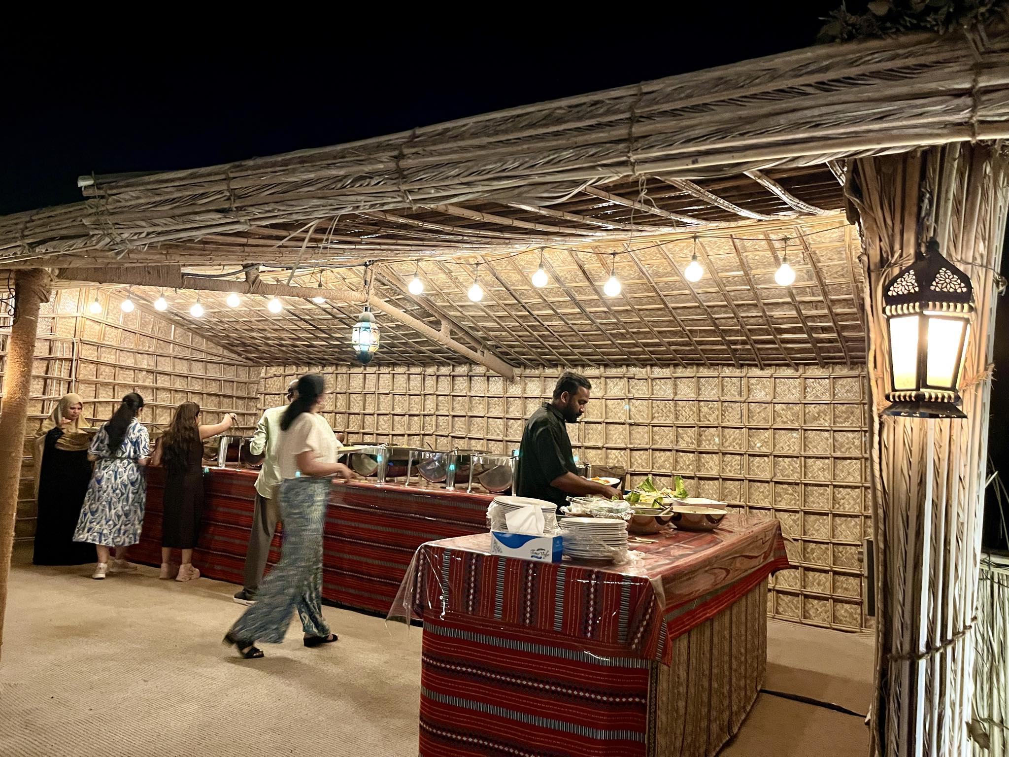 だんだと暗くなり日が沈んでいく時間になると、ツアーを夕食付きで申し込んだ私たちは、夕食の時間なので移動しましょうか、とスタッフさんから声がかかります。