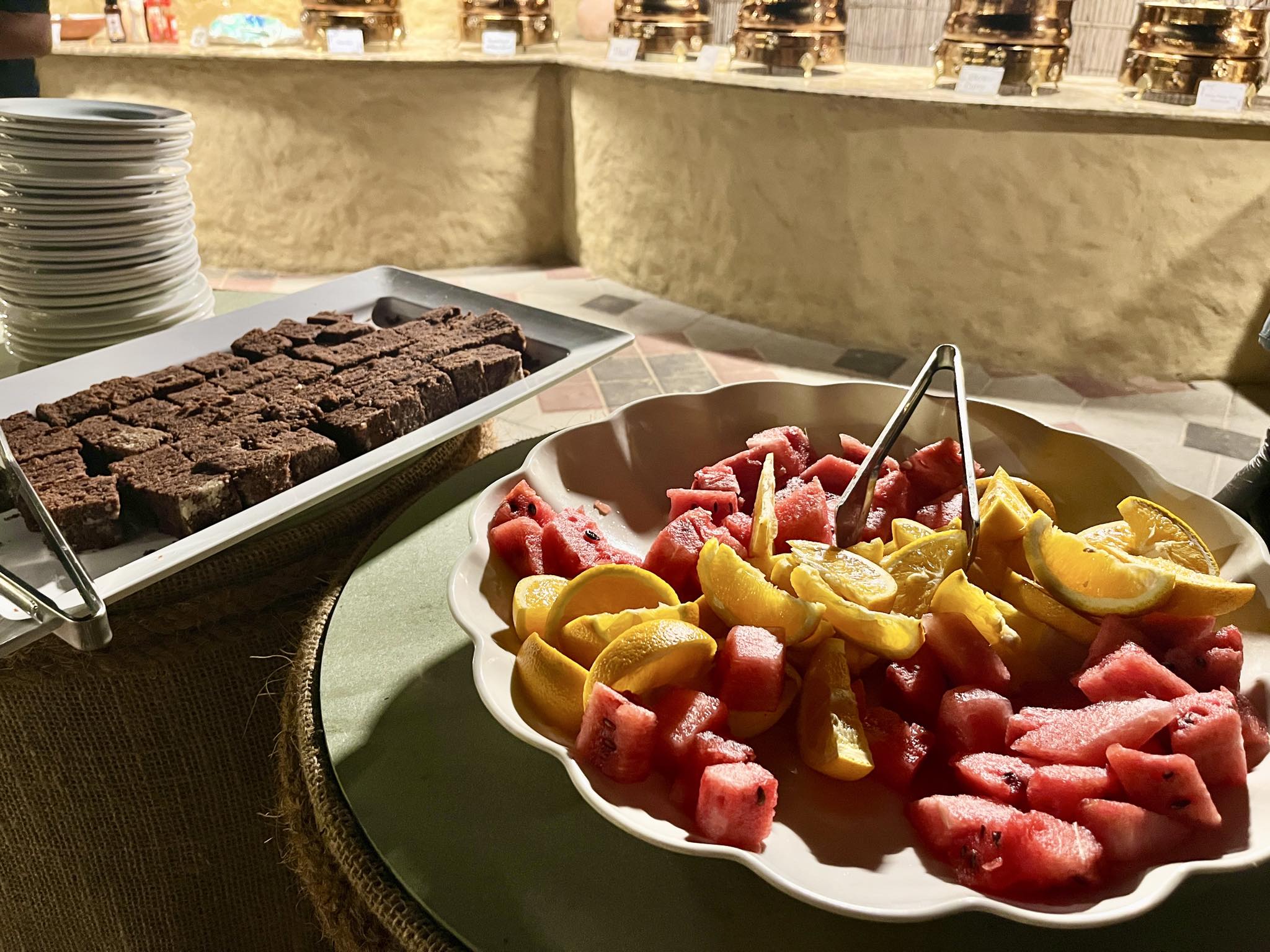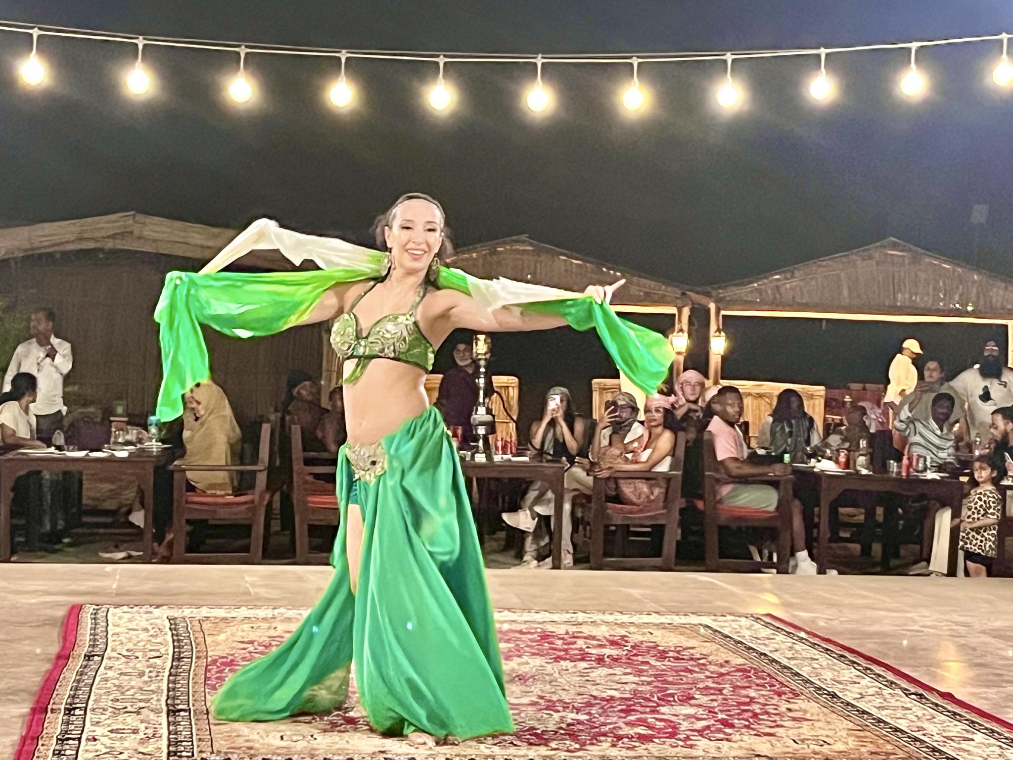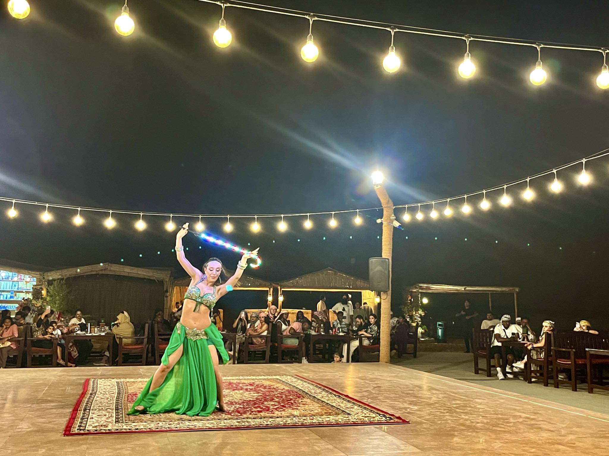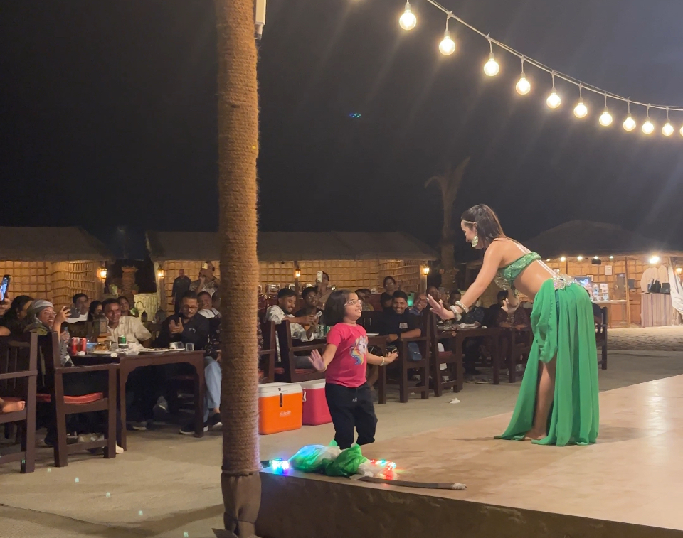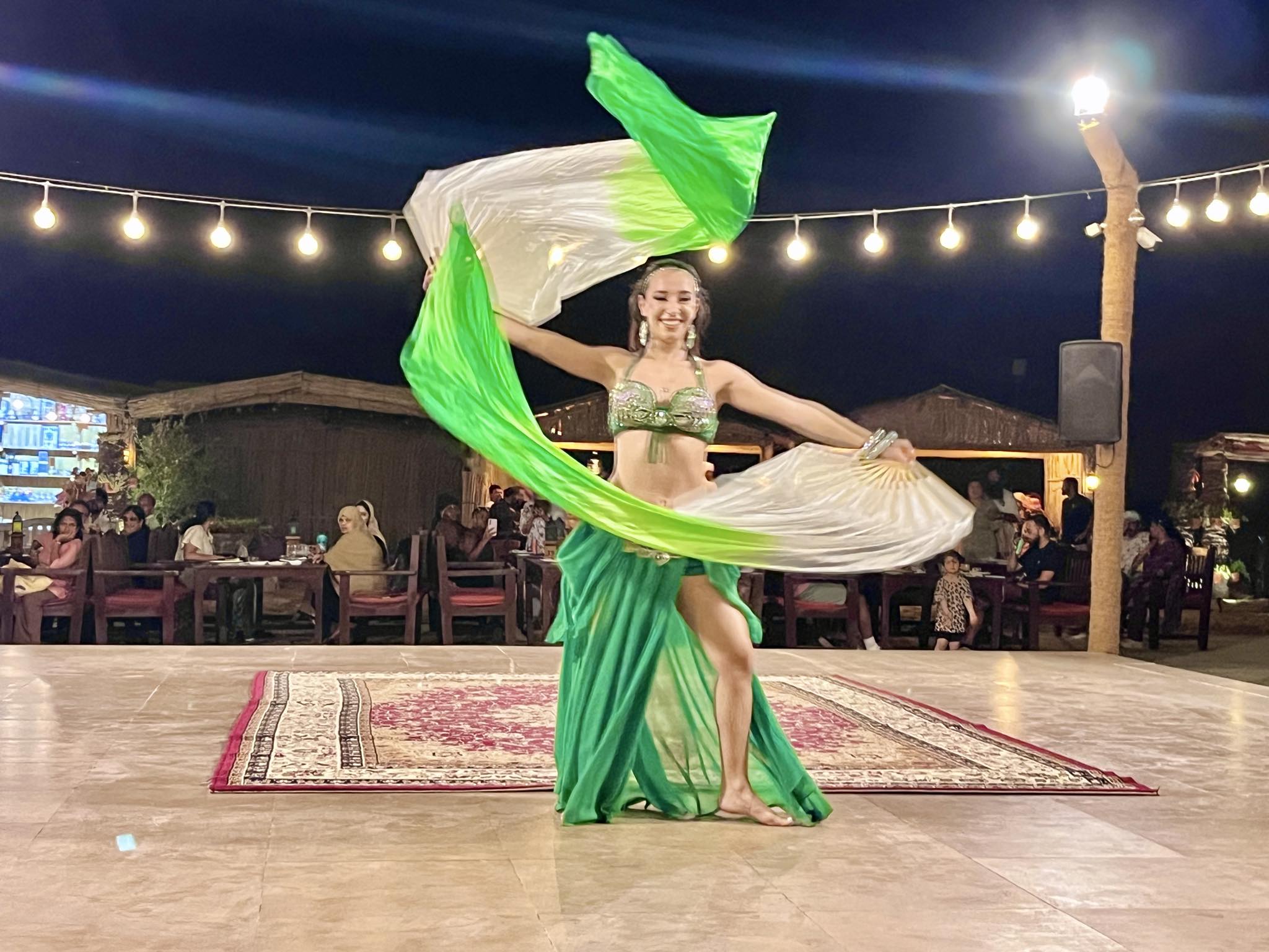 食事中、目の前にある中央ステージではベリーダンスの恰好をした女性が、アラブらしいエキゾチックな曲にあわせて炎をあやつりながら踊りはじめました。