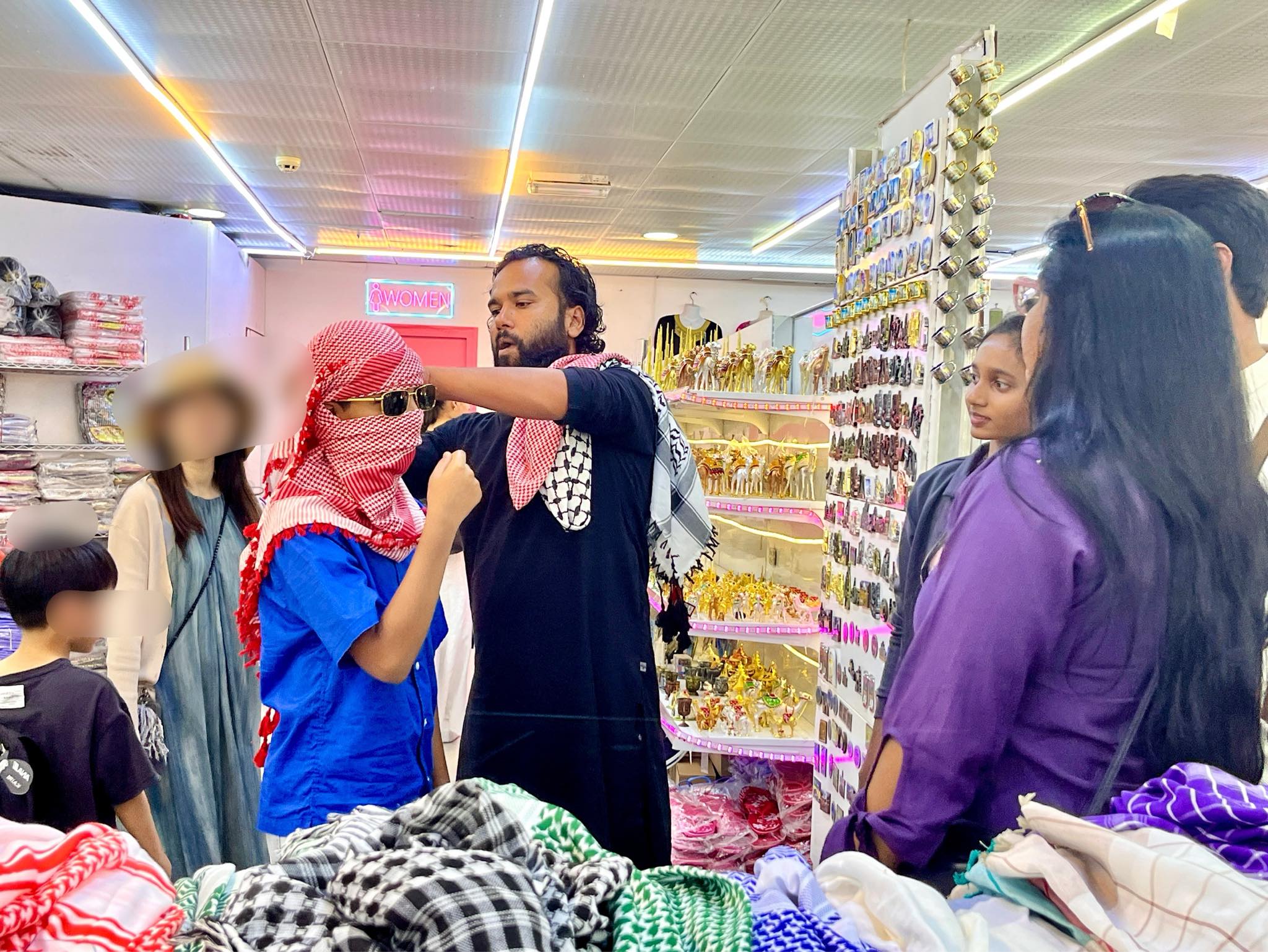 トイレまでの動線には、お土産(ラクダのぬいぐるみ、民族衣装)を売るスタッフがずらっと並んで呼び込みをしています。