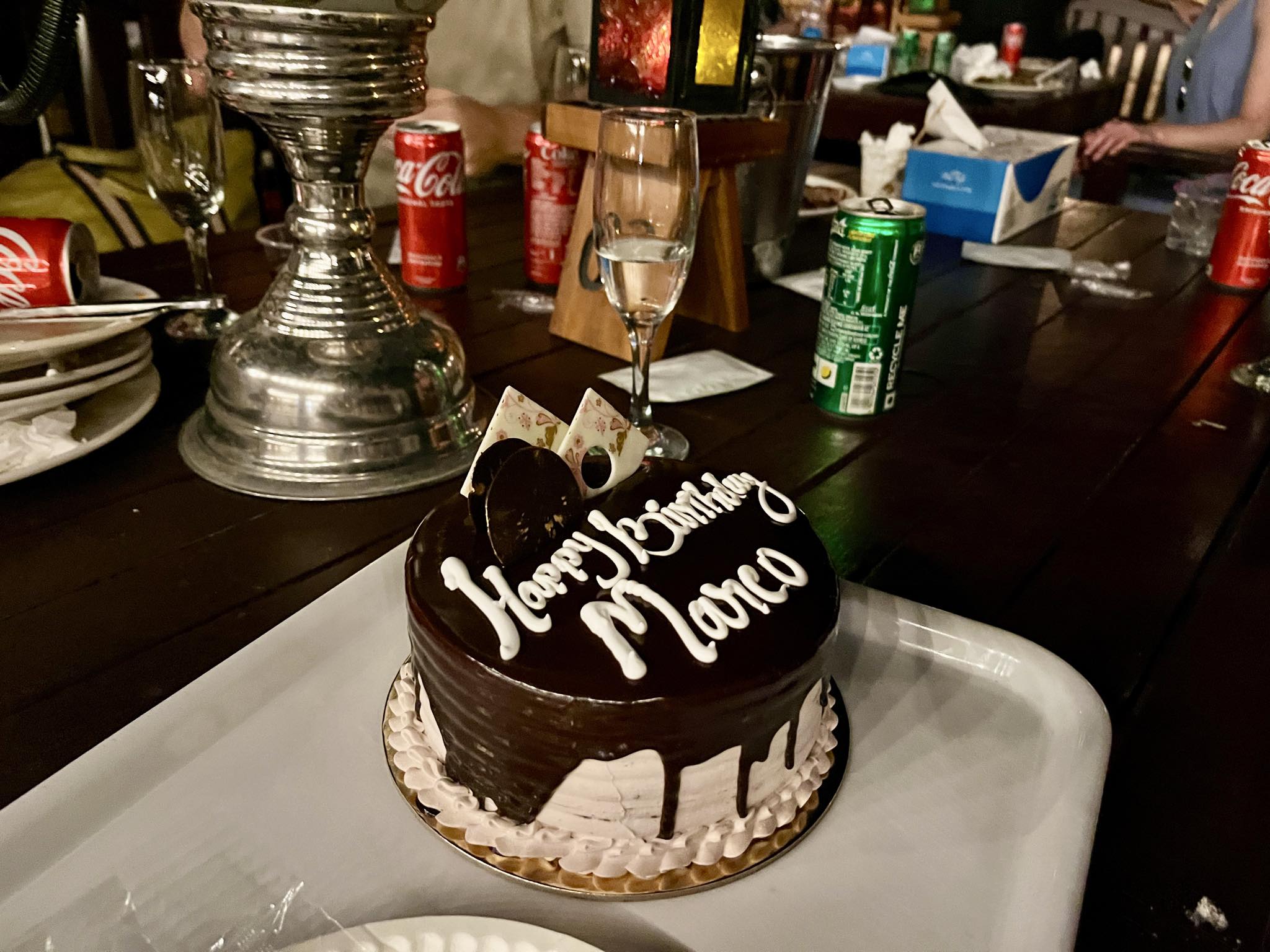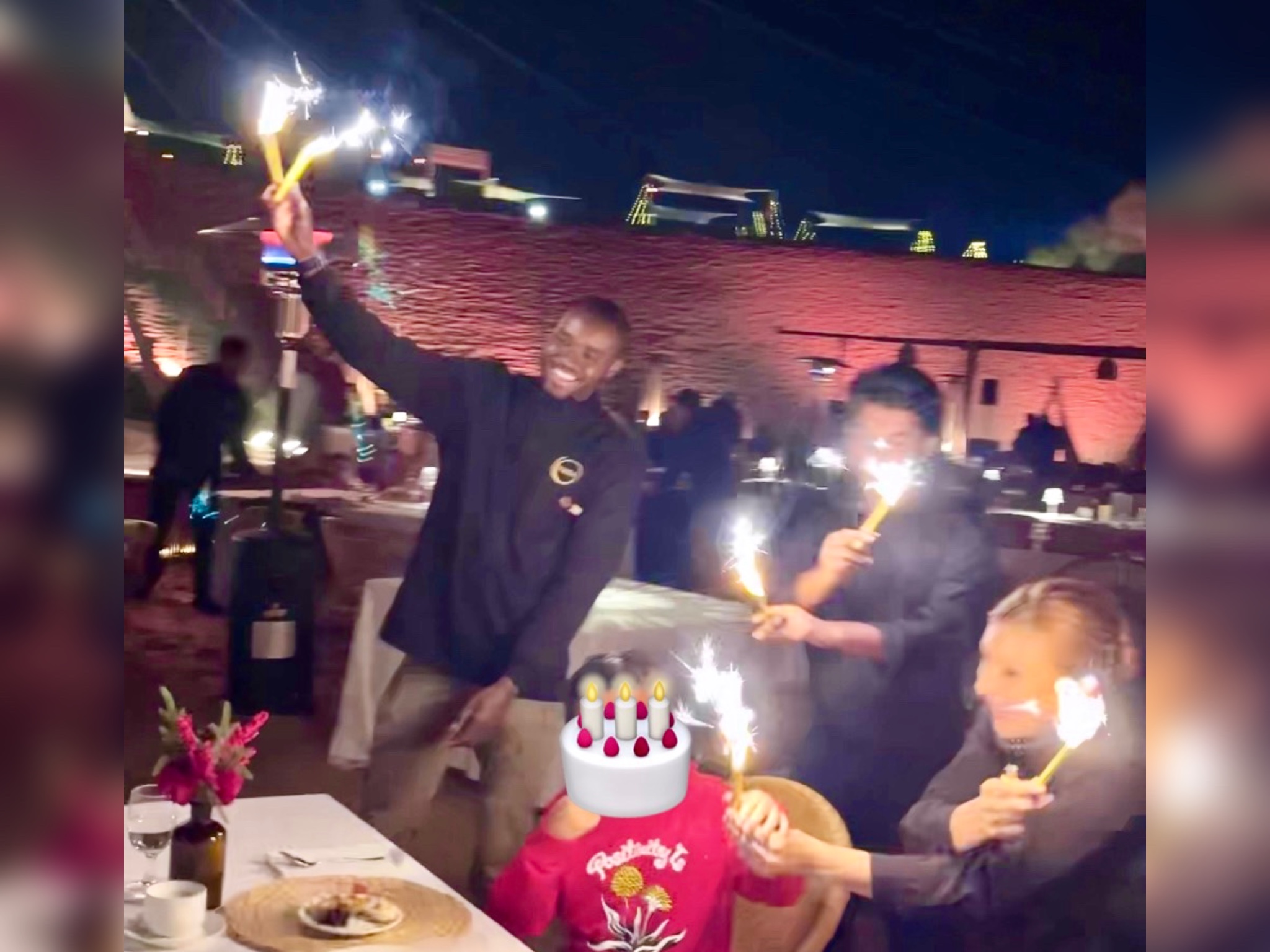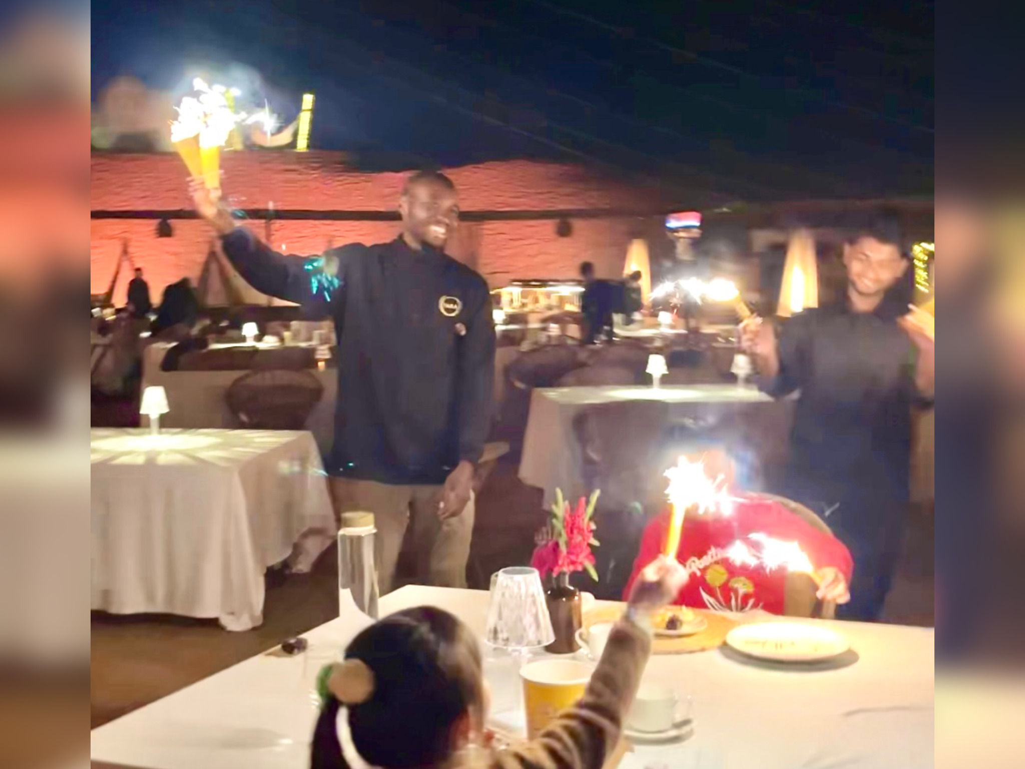 スタッフ3人が、ケーキと一緒に現れバースデーソングを歌ってくれます。