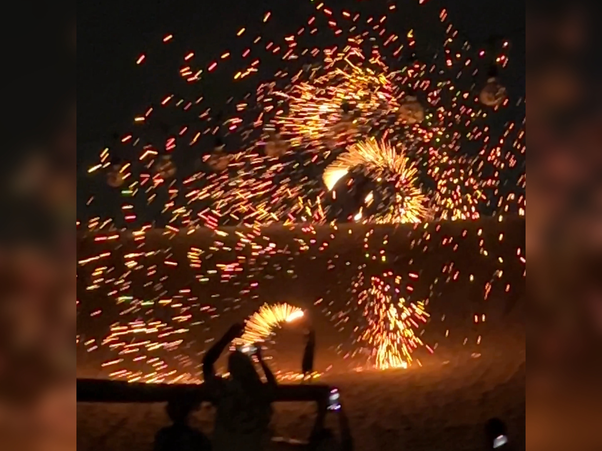 炎の形が変わるたびにみんな写真を撮ったり、歓声が上がっています。