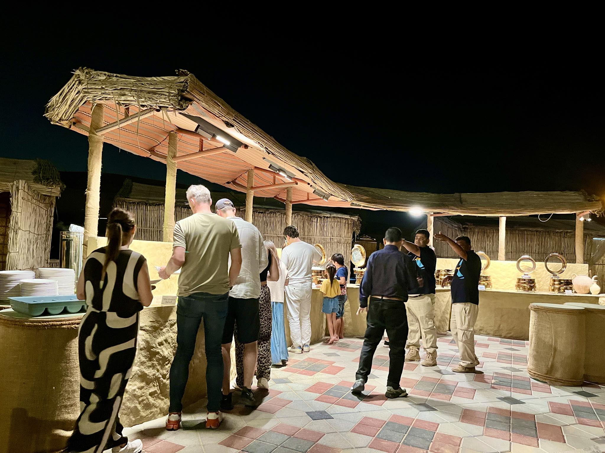 対照的に、値段の安さを売りにする砂漠ツアー会社は、リーズナブルな分、他の会社との合同で借りた砂漠サイトとなり、どうしても参加人数が多く、いつも混みあっていて騒がしい雰囲気があります。