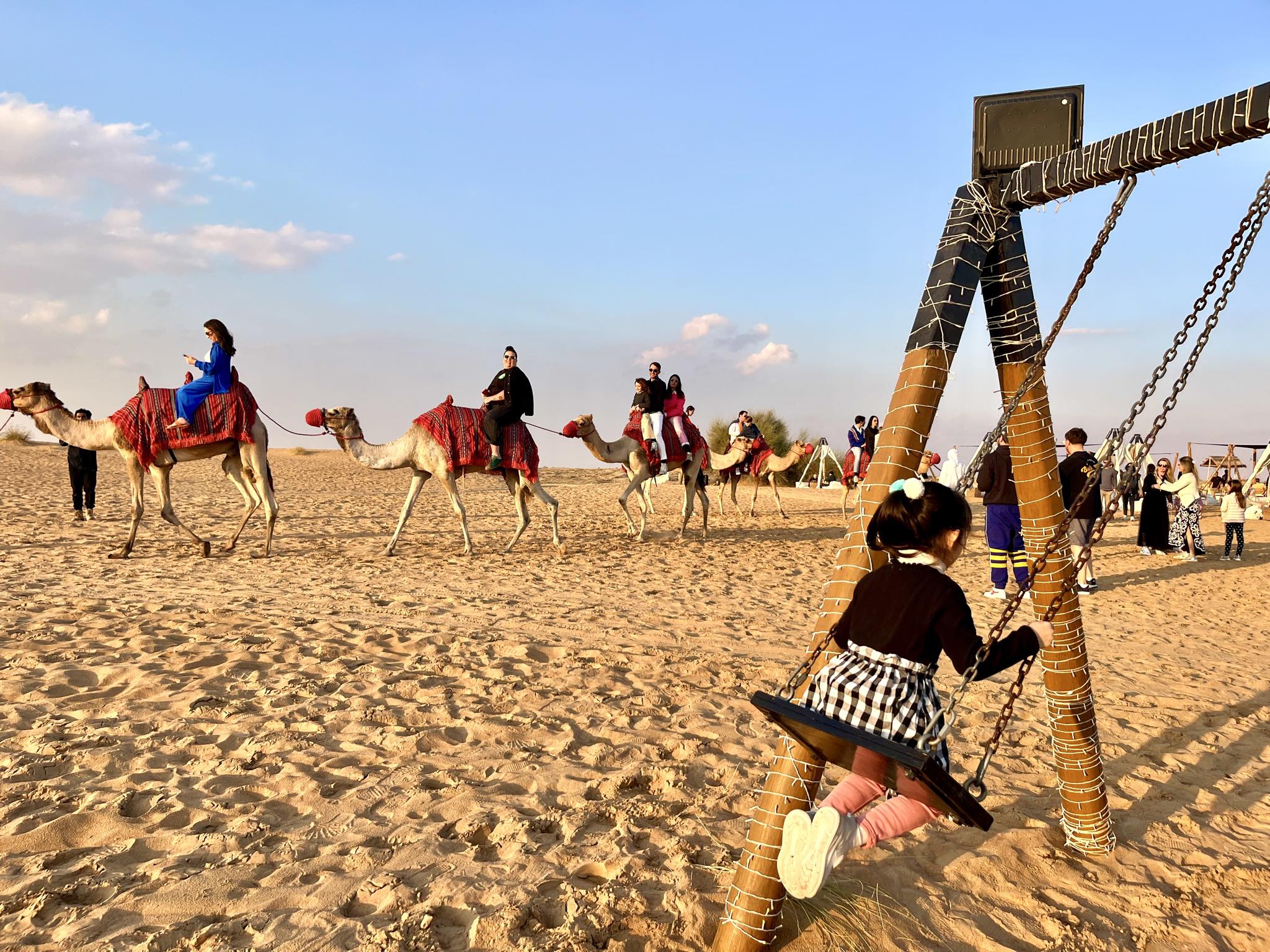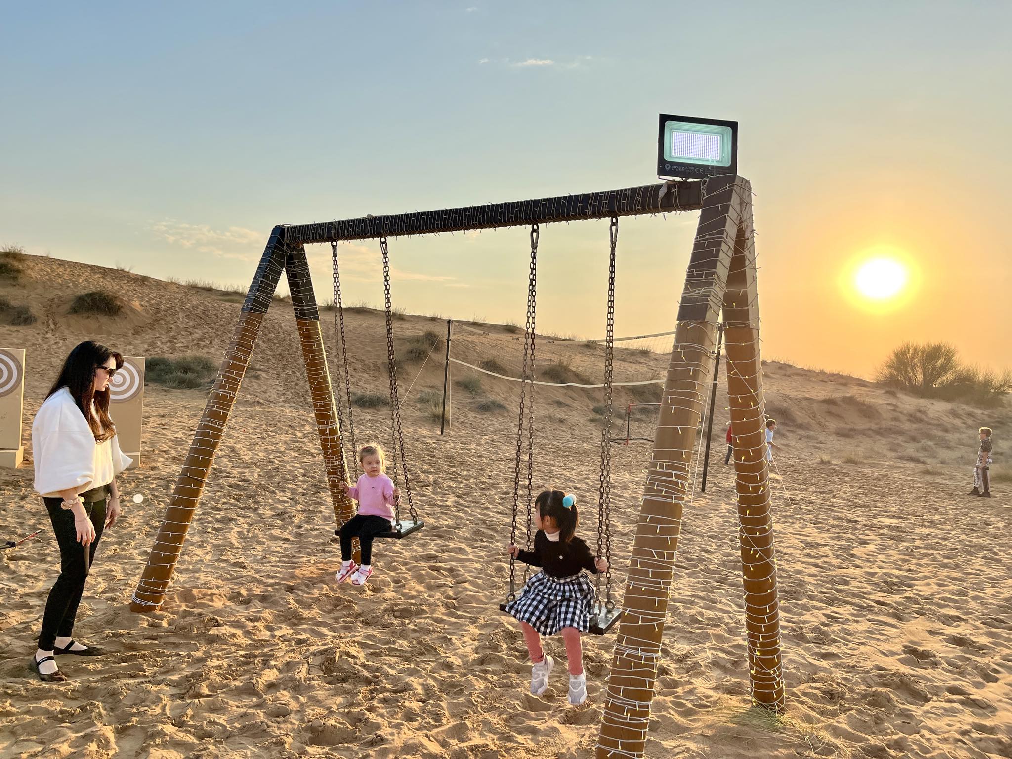 オトナも乗れるブランコ、砂漠で乗ると…これがすごく新鮮!