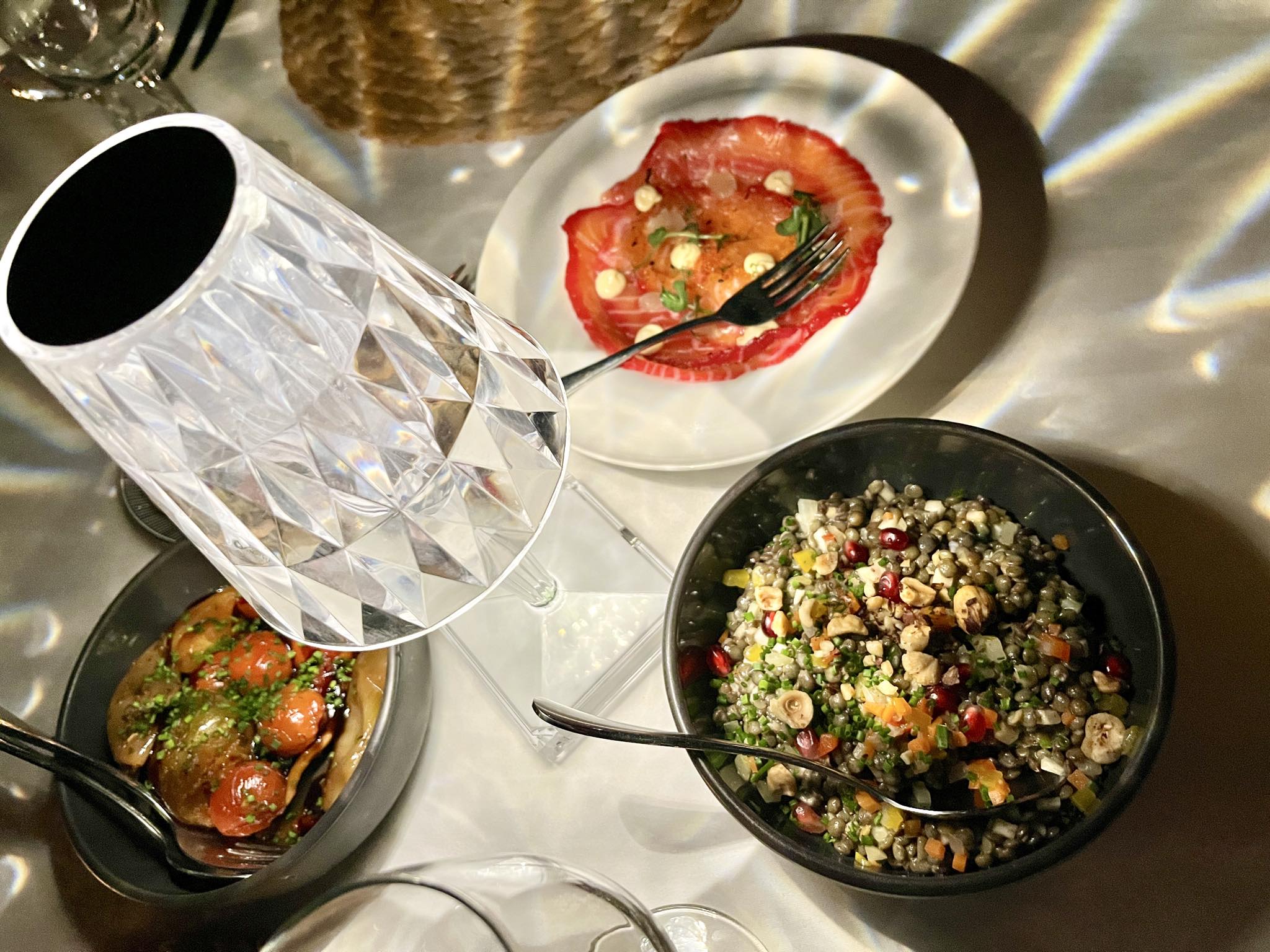 前菜、メイン、デザートと次々に美味しい食事が並びます。