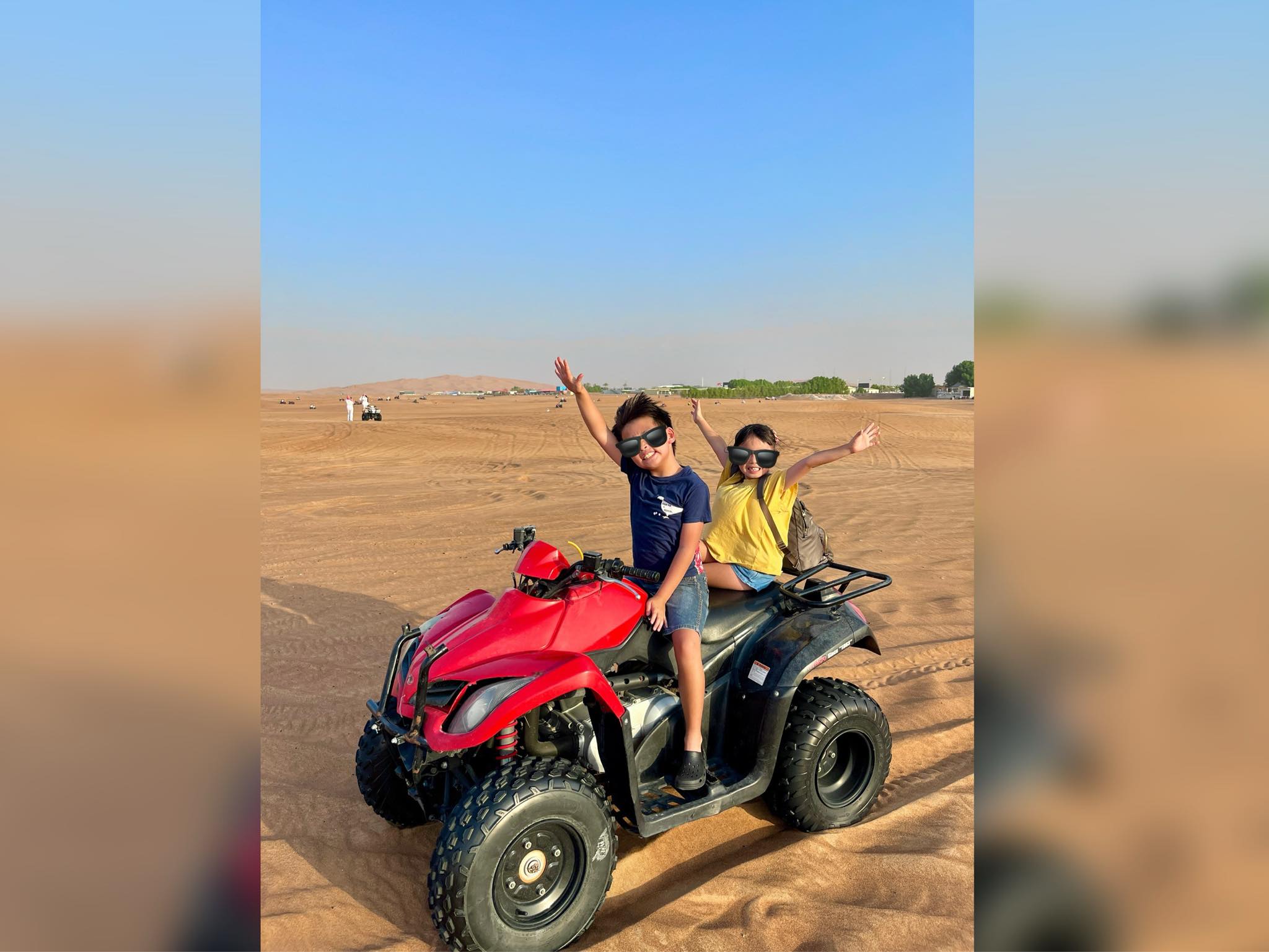 子供はハンドルに手を添えるくらいですが、見渡す限り砂漠の中を走り抜ける体験はプライスレス!