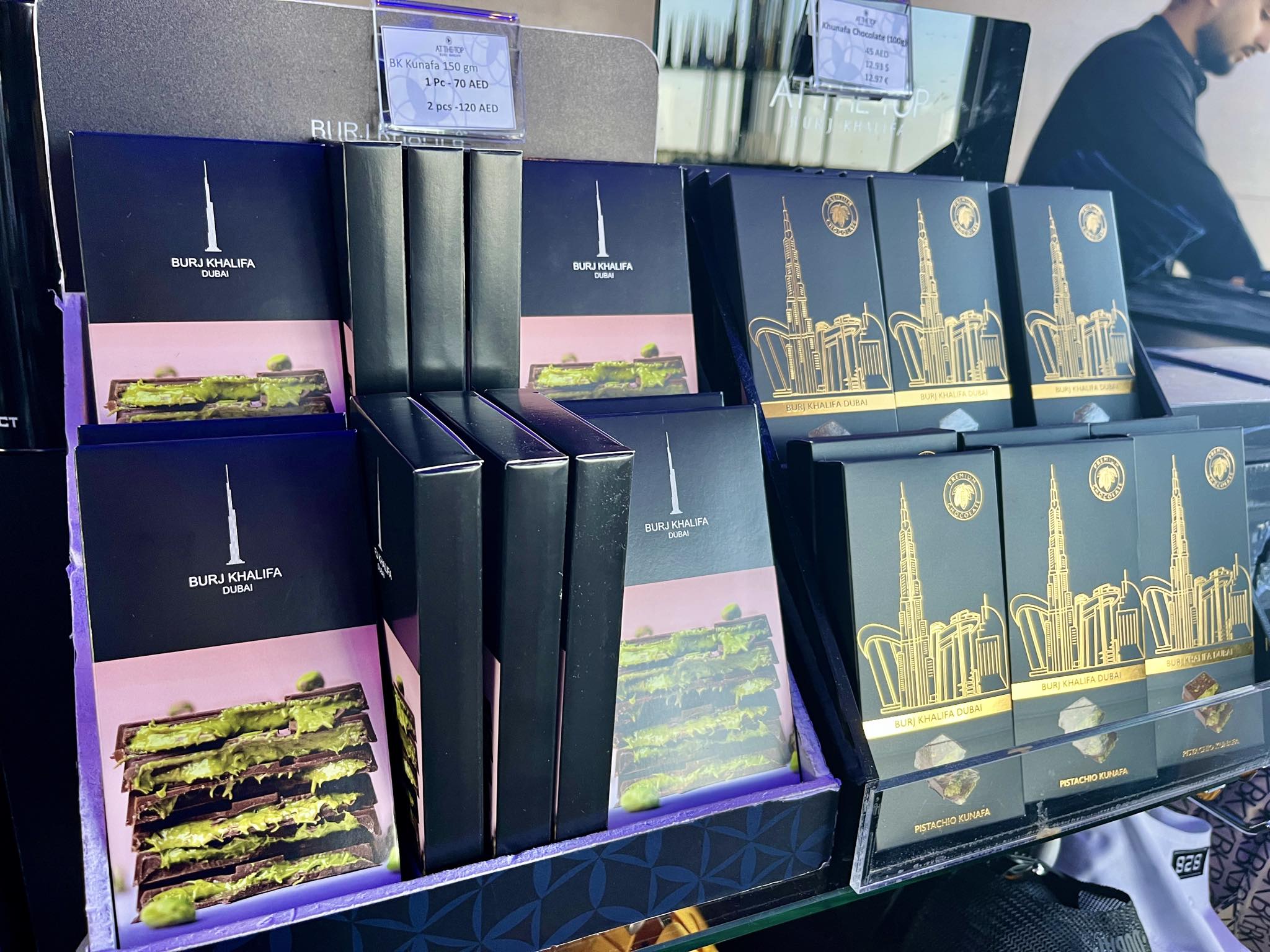 ブルジュハリファの展望台(124階)にも、ドバイチョコが登場。