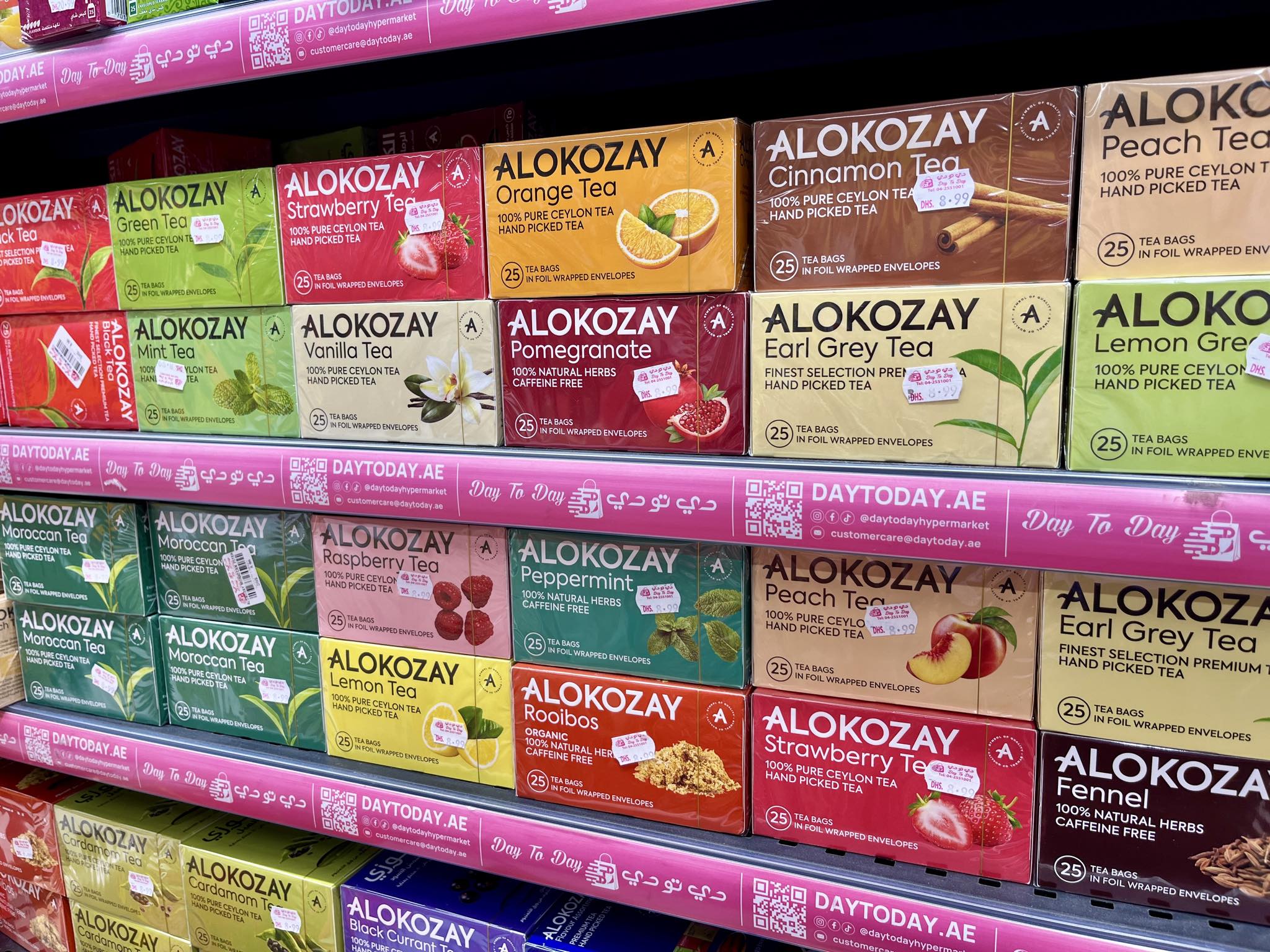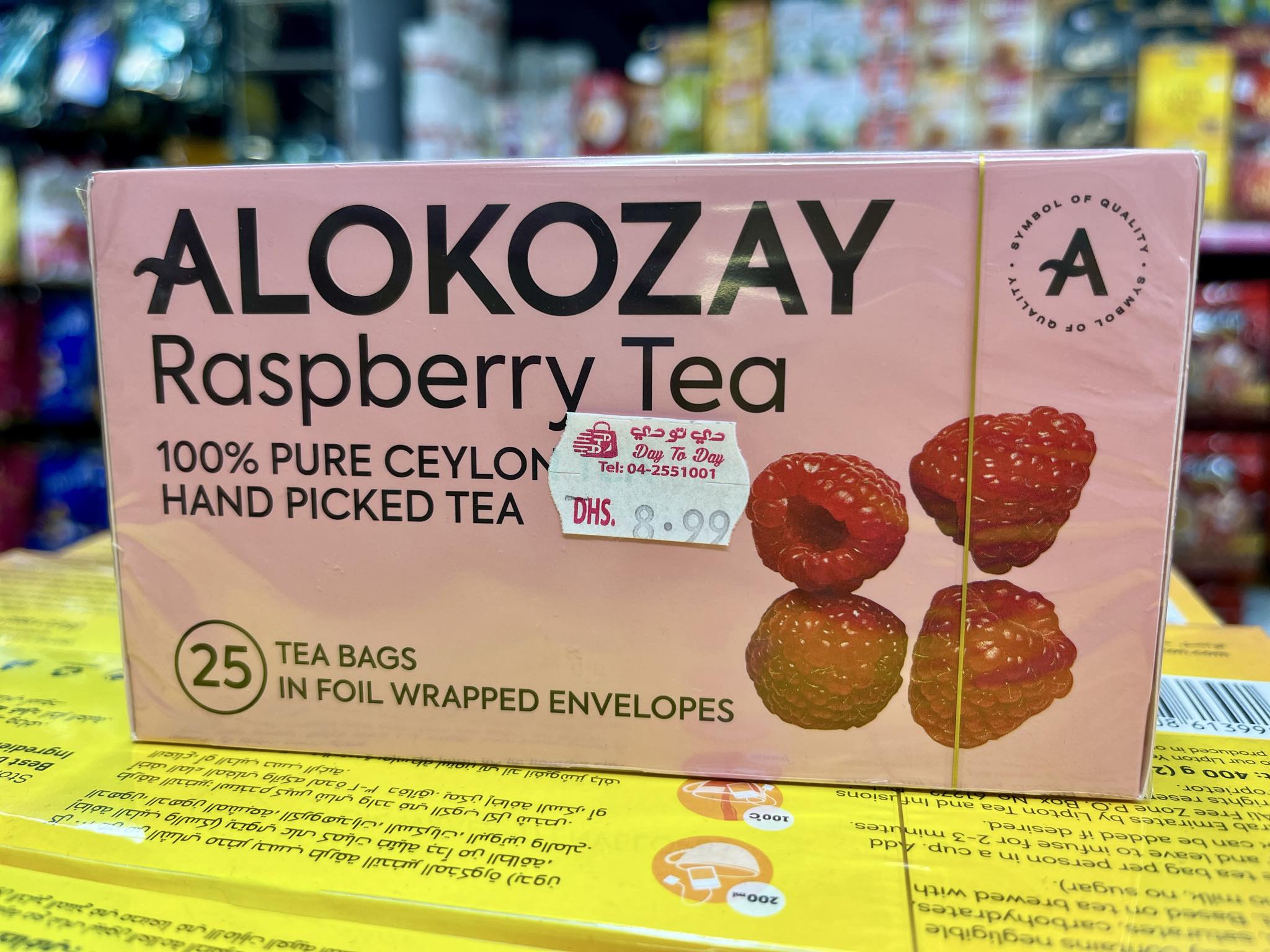 紅茶「アルコザイ」1箱 Dhs. 8.99(日本円で約360円)リビエラホテル近く大型ディスカウント店「DAY to DAY」調べ