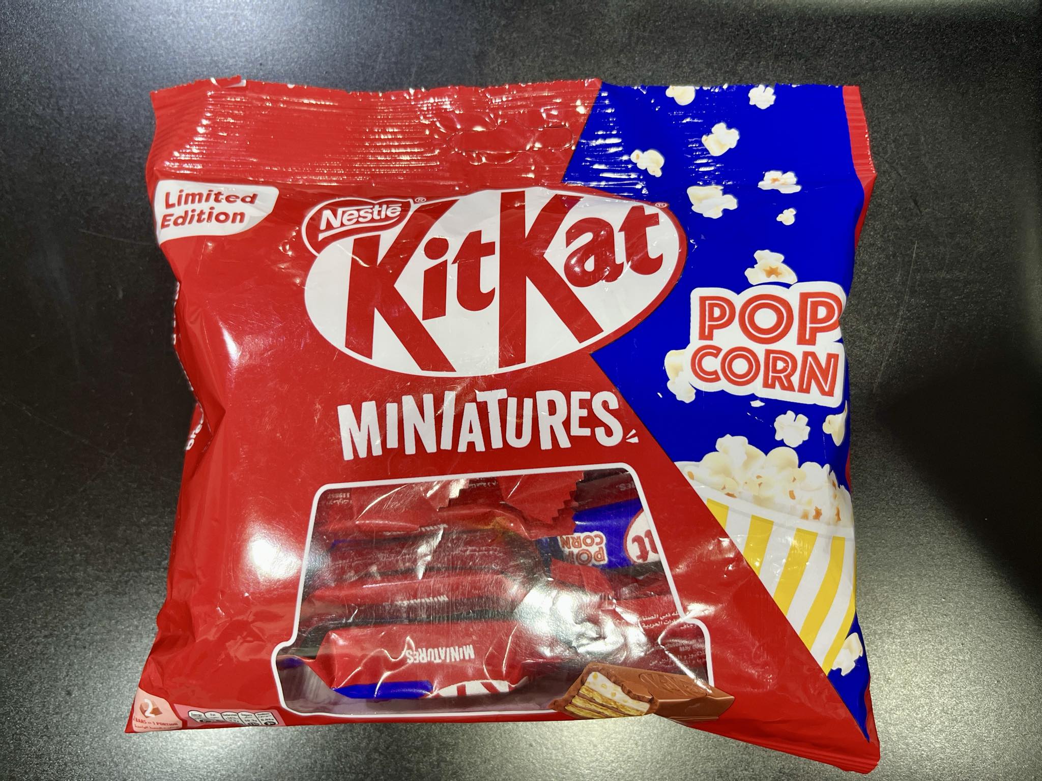 キットカット【 ポップコーン味 】1袋DHS.14.95(日本円で約600円)。