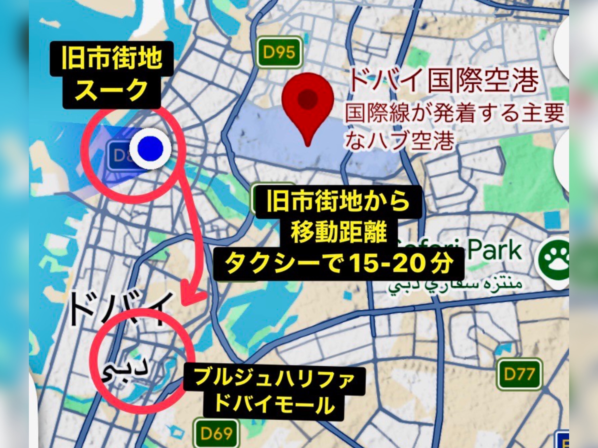 ドバイの全体の地図で場所を確認しましょう。